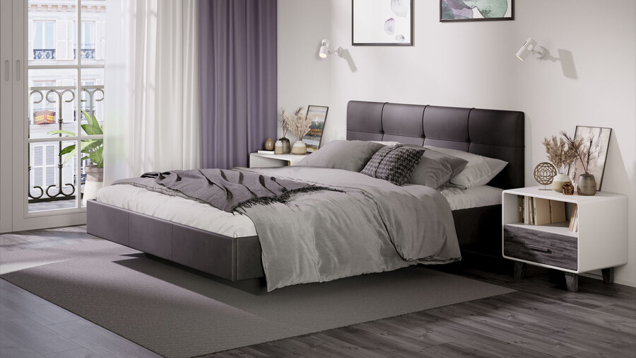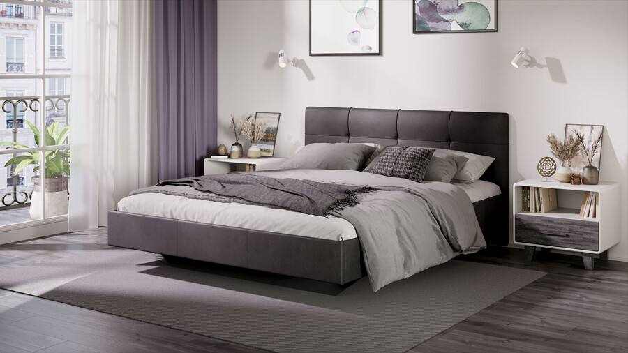 Кровать без ПМ «Элис» Тип 1 (без подъемного механизма) Исп.2 Велюр Графит