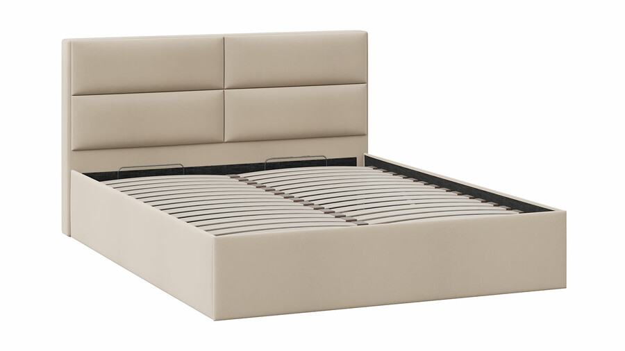 Кровать с ПМ «Глосс» Тип 1 (с подъемным механизмом) без заглушины Велюр Мокко светлый