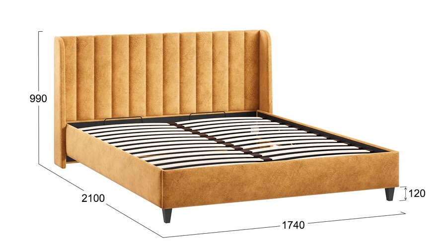 Кровать с ПМ «Шанель» (с подъемным механизмом) Микровелюр Wellmart Yellow