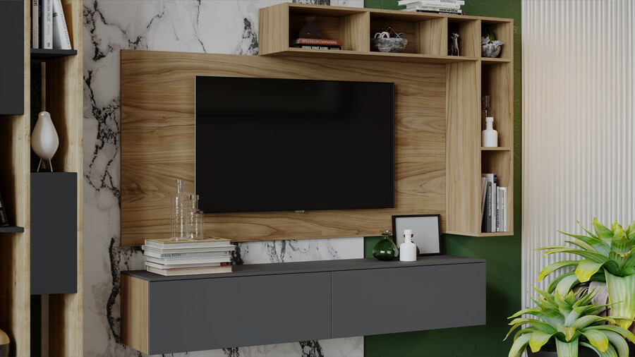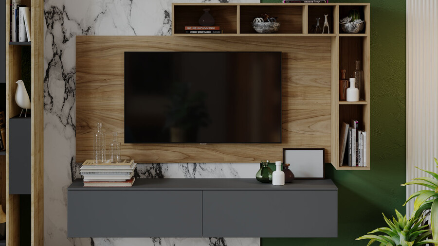 Гостиная «Порто» №1 - ГН-393.001 Яблоня Беллуно, Графит софт