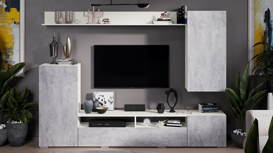 Гостиная «Моретти» Белый, Цемент светлый