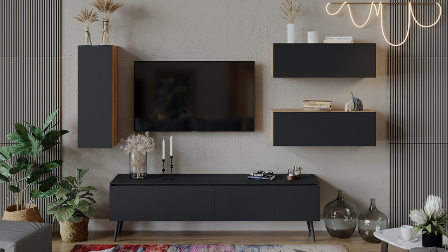 Гостиная «Глосс» №8 - Глосс ГН 319.08 Яблоня Беллуно, Cтекло Графит матовый, Серый