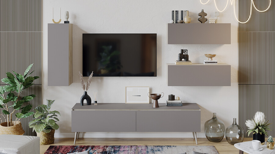 Гостиная «Глосс» №8 - Глосс ГН 319.08 Баттл Рок, Стекло Светлый Stone(St), Бежевый