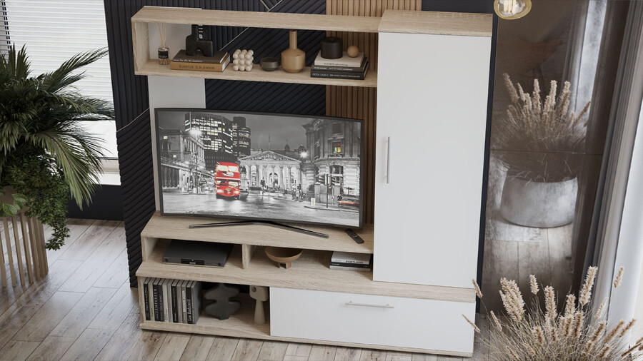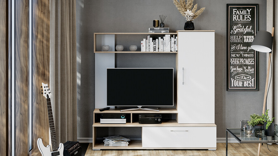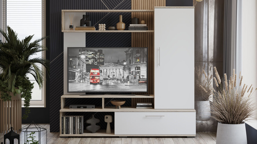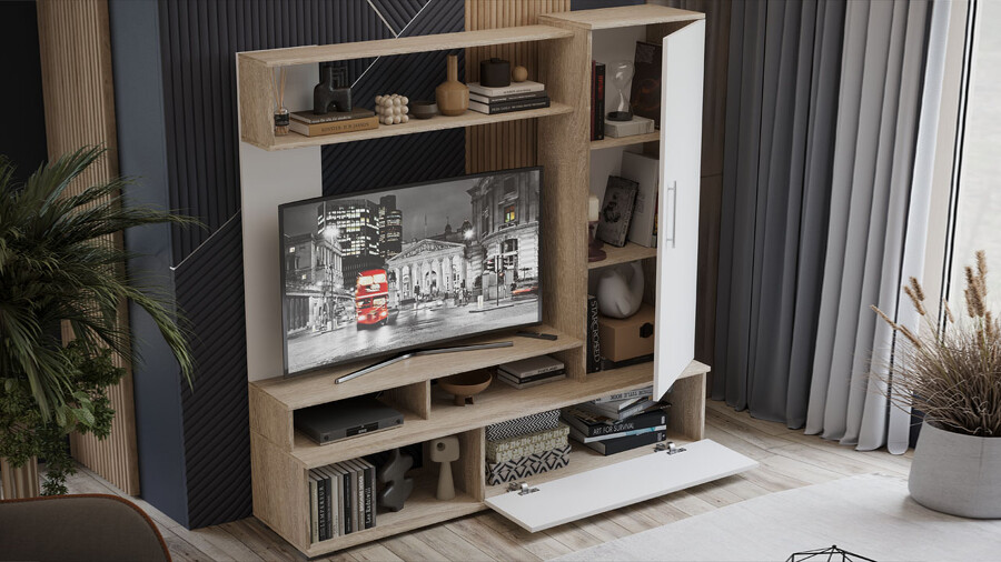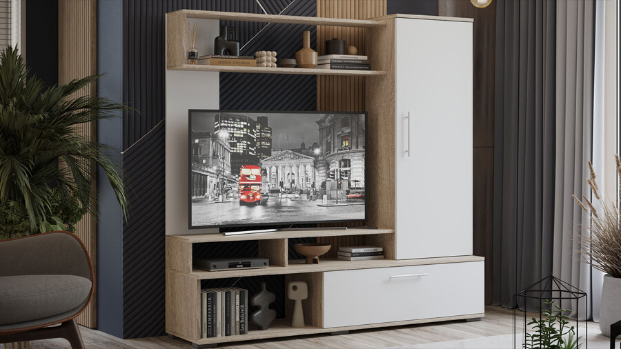 Стенка «Сиена» Дуб Сонома, Белый Ясень