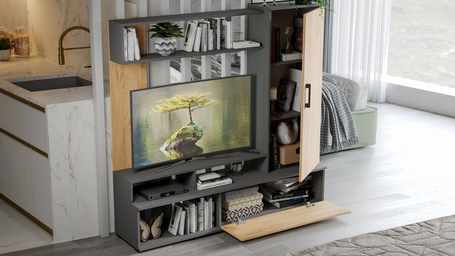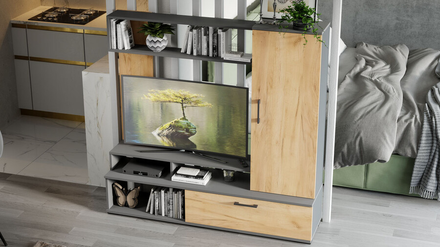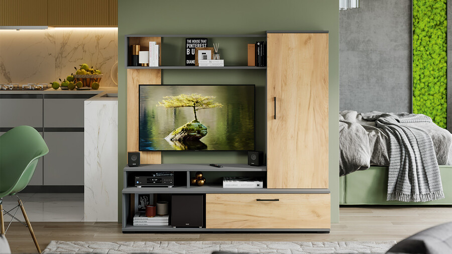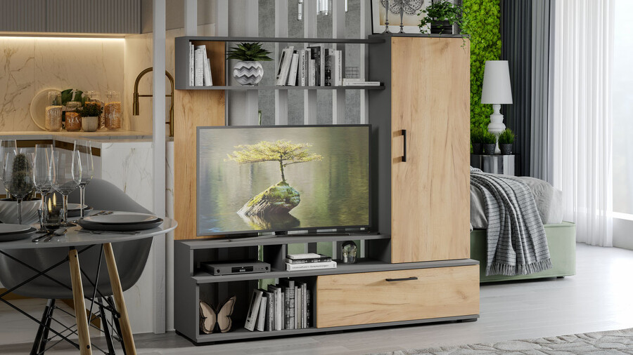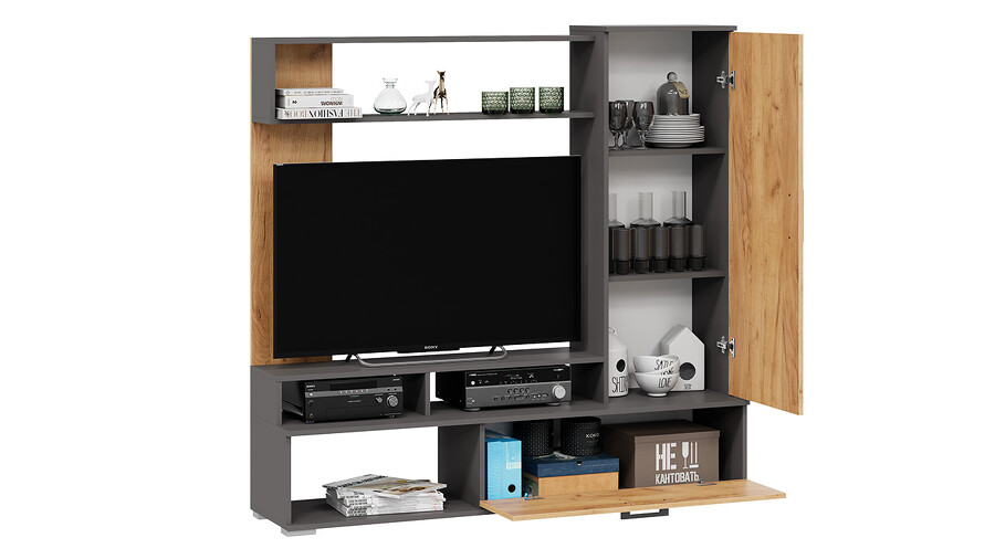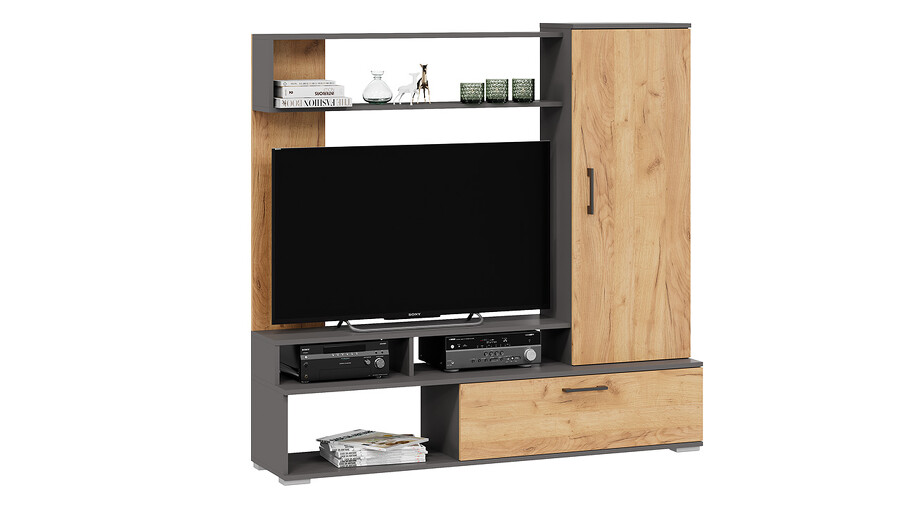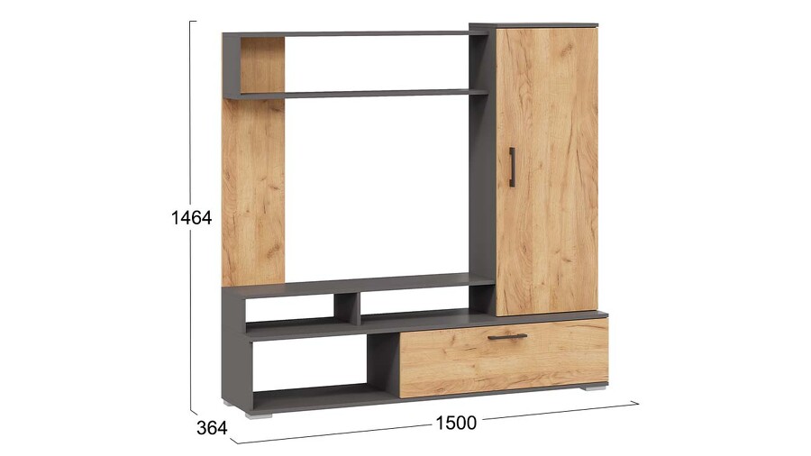 Стенка «Сиена» Графит Серый, Дуб Крафт золотой