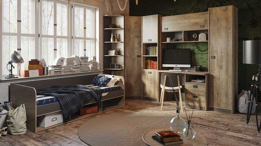 Набор детской мебели «Пилигрим» №1 - ГН-276.001 Дуб Каньон светлый, Фон серый