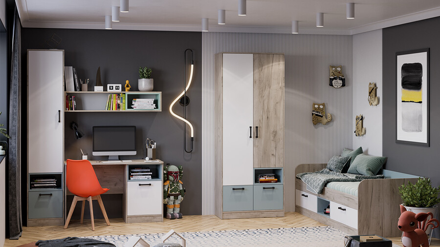 Набор детской мебели «Оливер» №2 - ГН 401.002 Дуб крафт серый, Белый, Серо-голубой