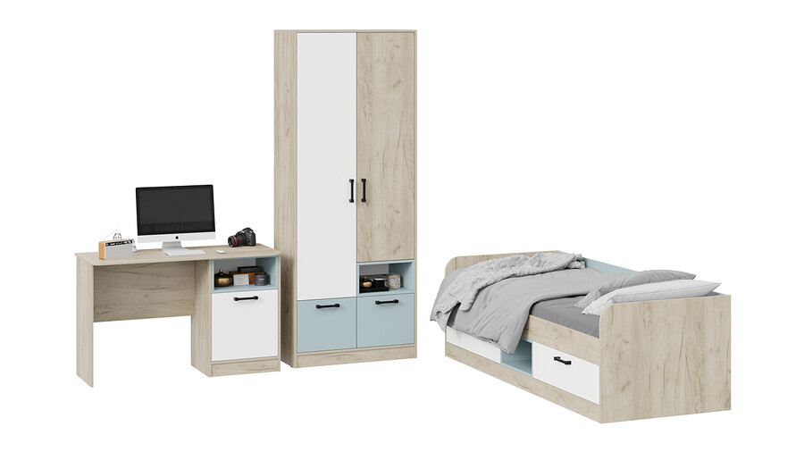 Набор детской мебели «Оливер» стандартный - ГН 401.000 Дуб крафт серый, Белый, Серо-голубой