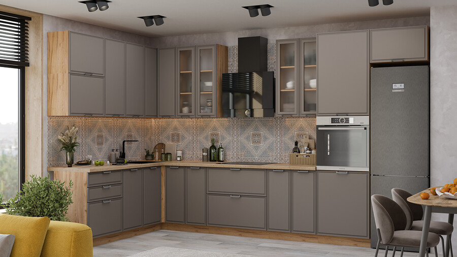 В стоимость не включено: Стеновая панель, столешница, доводчики, бытовая техника, мойка, смеситель, аксессуары
