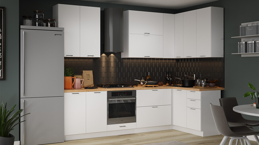 В стоимость не включено: Стеновая панель, столешница, доводчики, бытовая техника, мойка, смеситель, аксессуары