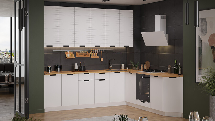 В стоимость не включено: Стеновая панель, столешница, доводчики, бытовая техника, мойка, смеситель, аксессуары