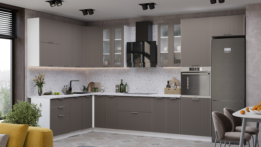 В стоимость не включено: Стеновая панель, столешница, доводчики, бытовая техника, мойка, смеситель, аксессуары