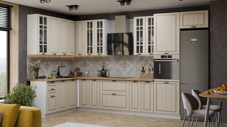 В стоимость не включено: Стеновая панель, столешница, доводчики, бытовая техника, мойка, смеситель, аксессуары
