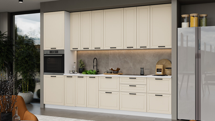 В стоимость не включено: Стеновая панель, столешница, доводчики, бытовая техника, мойка, смеситель, аксессуары
