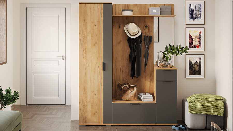 Прихожая «Эвита» №1 Дуб Крафт золотой, Графит Серый