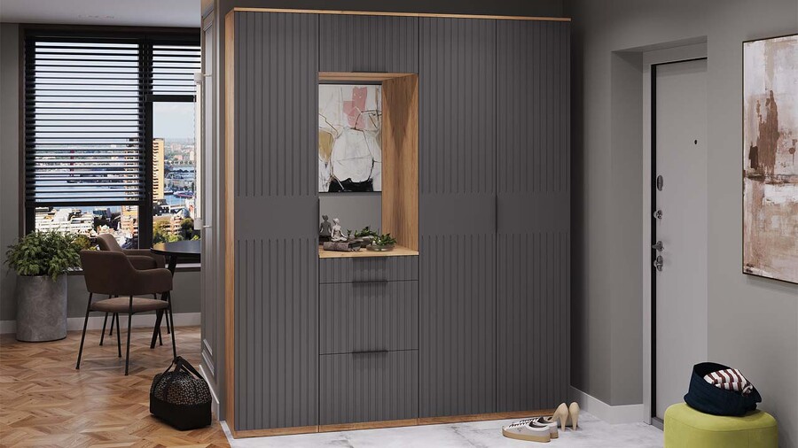 Прихожая «Хилтон» № 1 Дуб Крафт золотой, Графит матовый