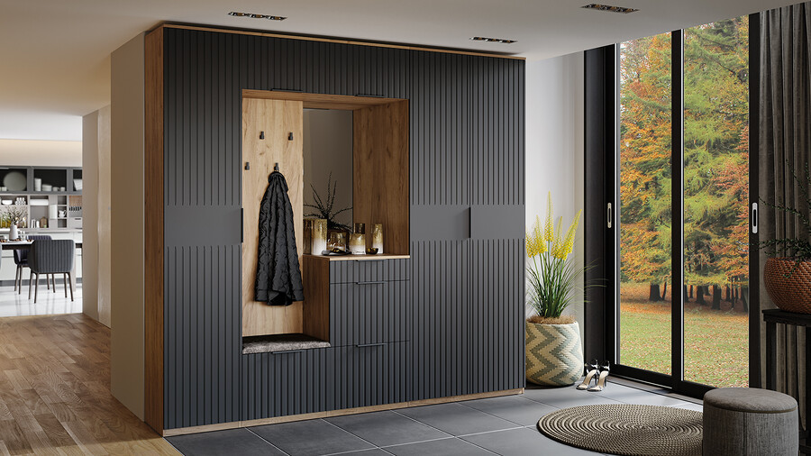 Прихожая «Хилтон» № 2 Дуб Крафт золотой, Графит матовый