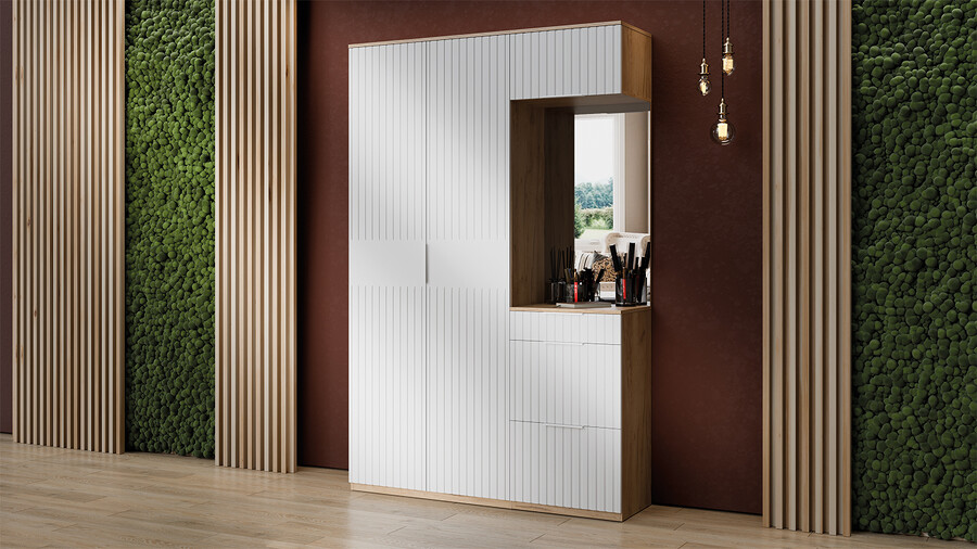 Прихожая «Хилтон» № 5 Дуб Крафт золотой, Белый матовый