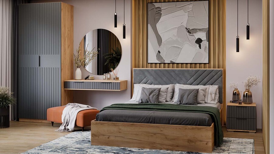 Спальный гарнитур «Хилтон» №3 Дуб Крафт золотой, Графит матовый