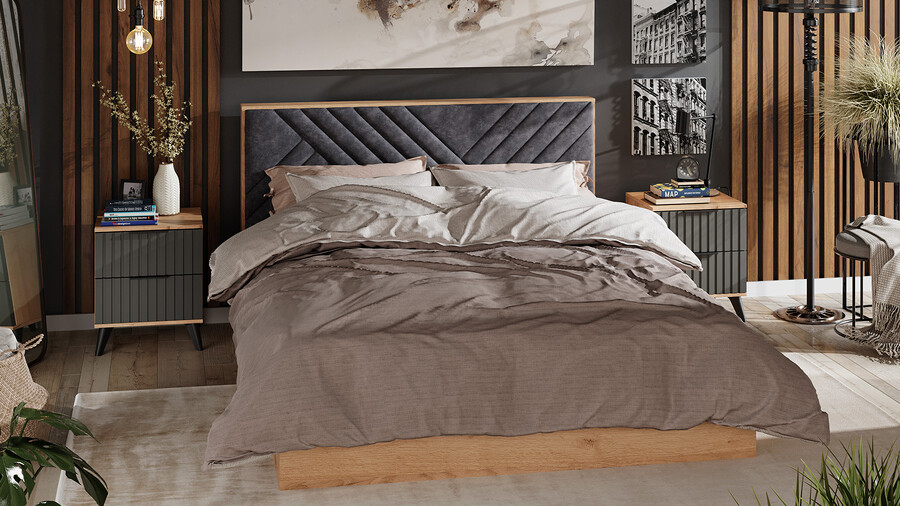 Спальный гарнитур «Хилтон» №5 Черный матовый, Дуб Крафт золотой, Графит матовый