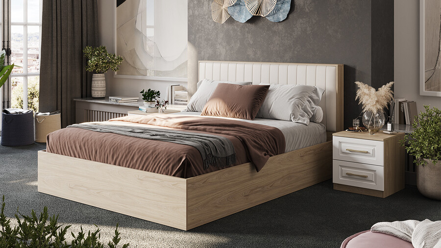 Спальный гарнитур «Сэнди» стандартный №2 Вяз благородный, Белый, Велюр Бежевый