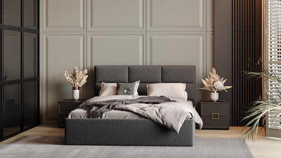 Спальный гарнитур «Стелла» стандартный Серый вулкан, Фон серый, Экомех Barni Grey