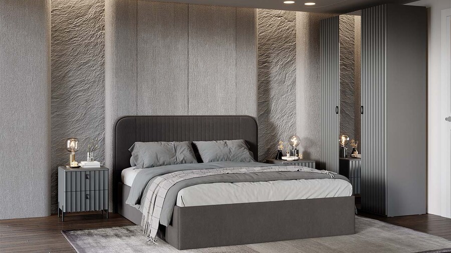 Спальный гарнитур «Тиффани» №1 Серый графит, Графит матовый, Велюр Графит