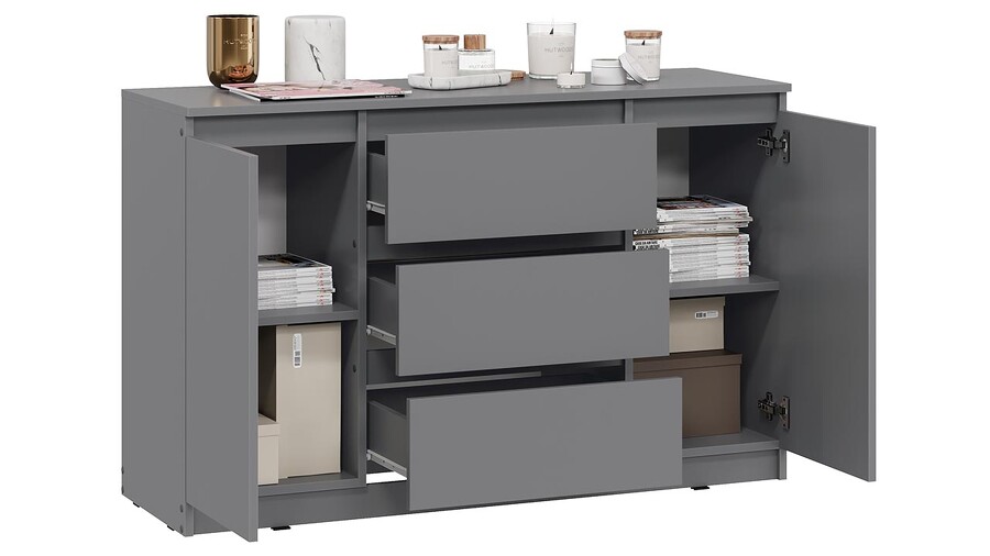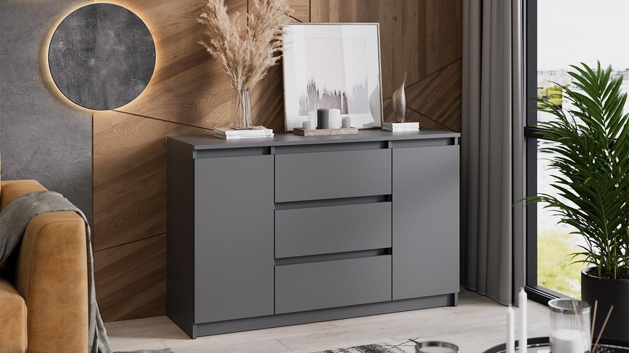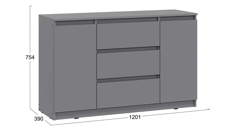 Комод «Денвер» (3 ящика двухстворчатый) Исп.2 Графит Серый