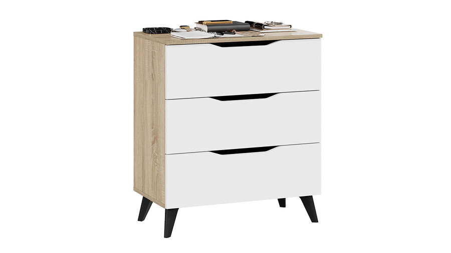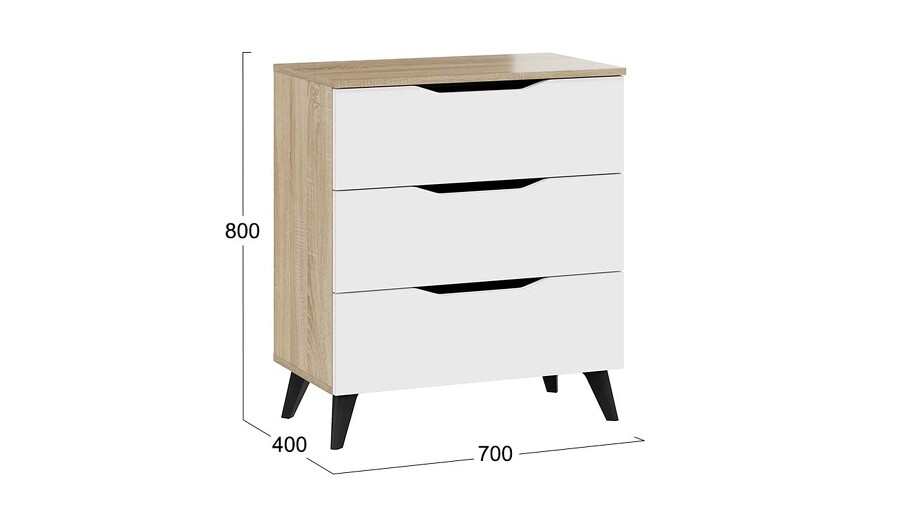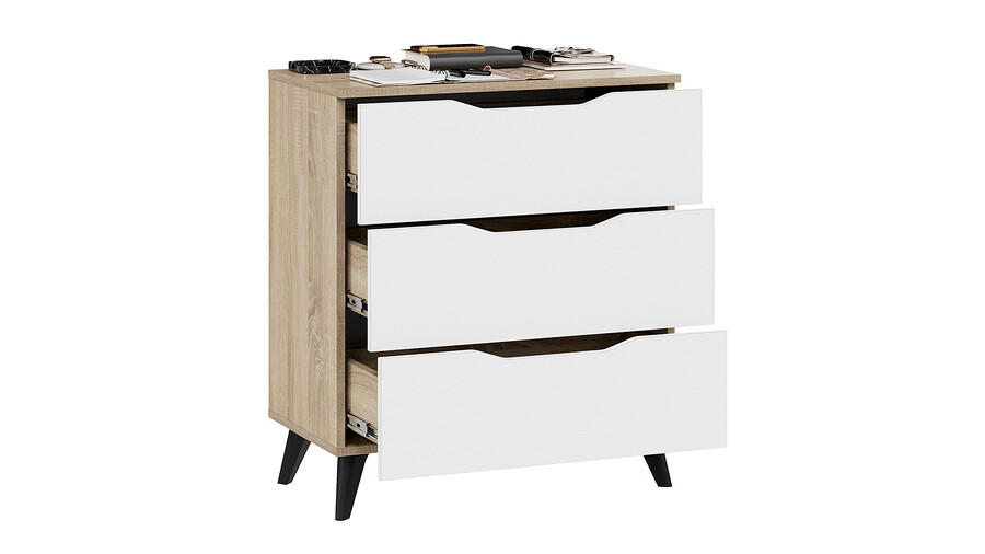 Комод тип 3 с опорами Черный матовый, Дуб Сонома, Белый Ясень