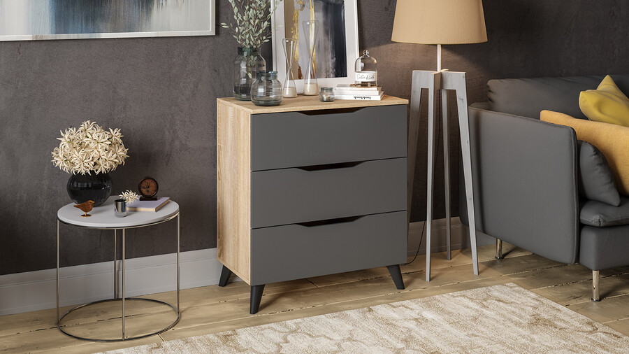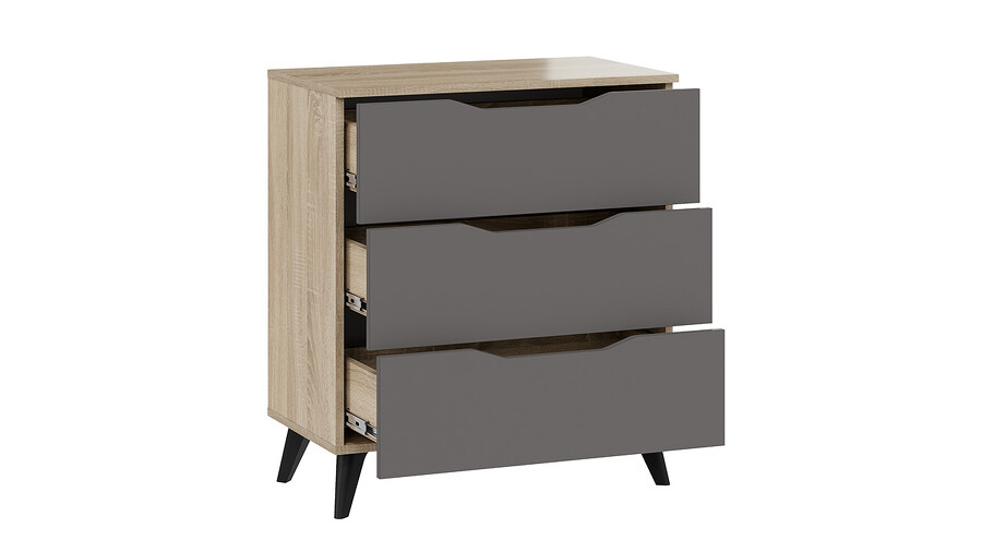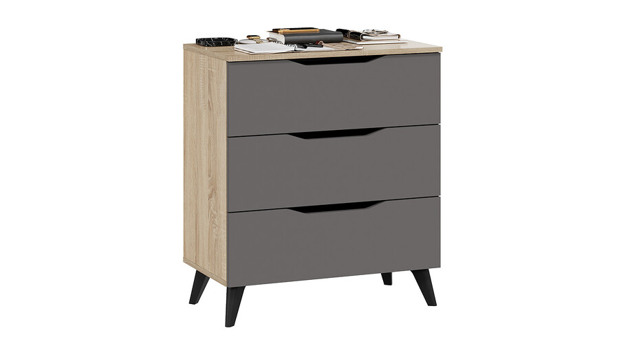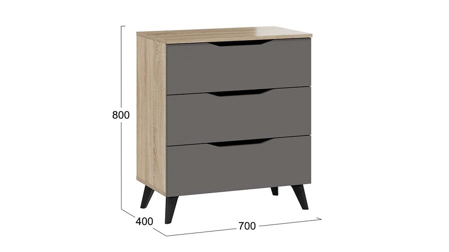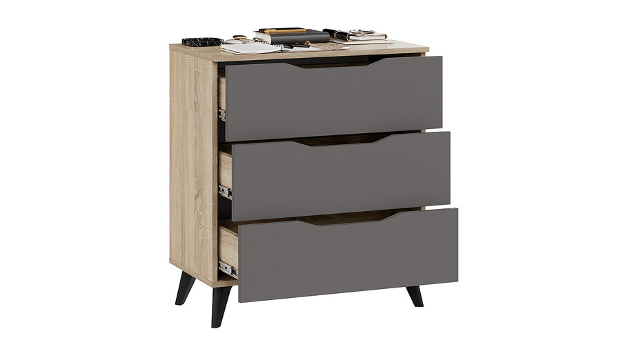 Комод тип 3 с опорами Черный матовый, Дуб Сонома, Графит Серый
