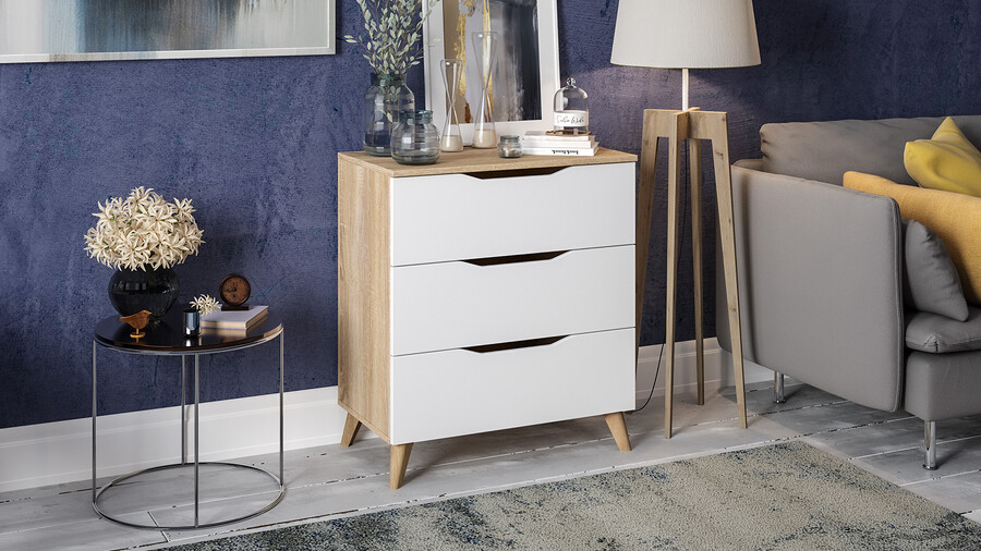 Комод тип 3 с опорами Бук матовый, Дуб Сонома, Белый Ясень