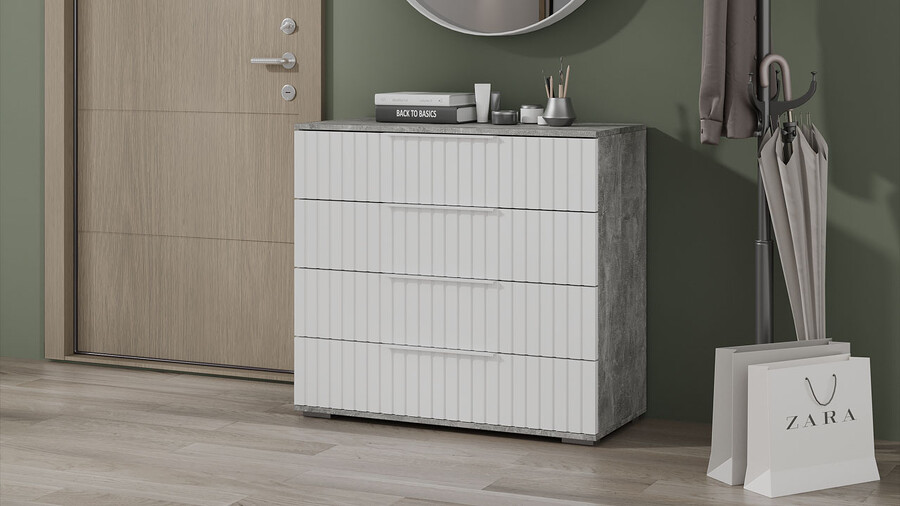 Комод «Хилтон» - 402.010.000 Ателье светлый, Белый матовый