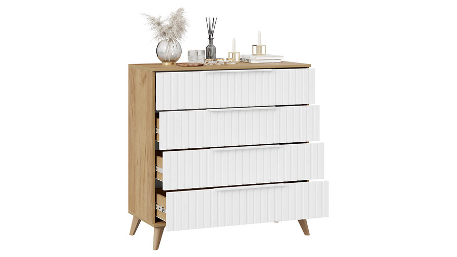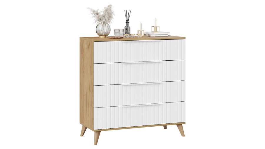 Комод «Хилтон» с опорами Бук матовый, Дуб Крафт золотой, Белый матовый
