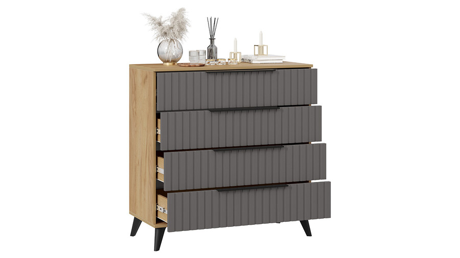 Комод «Хилтон» с опорами Черный матовый, Дуб Крафт золотой, Графит матовый