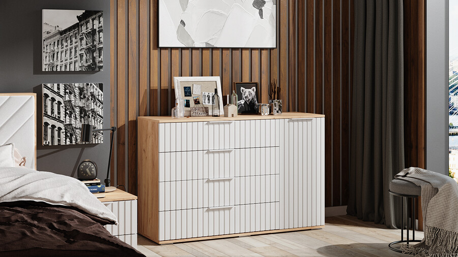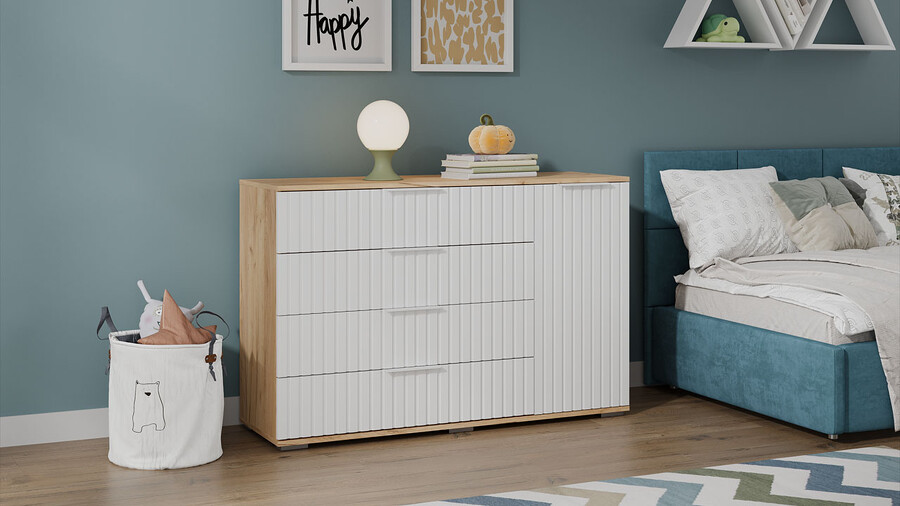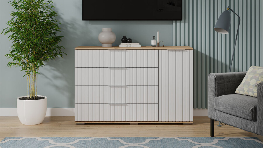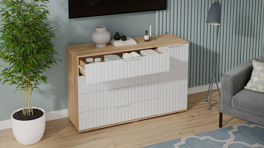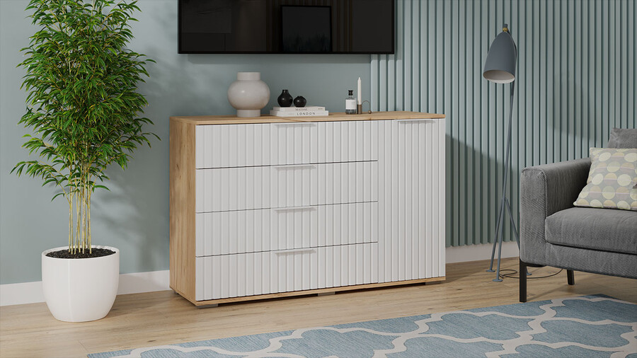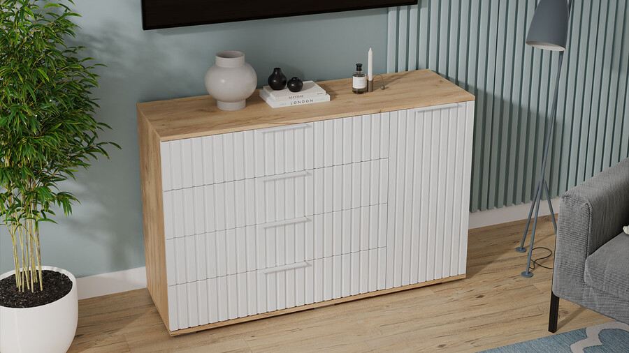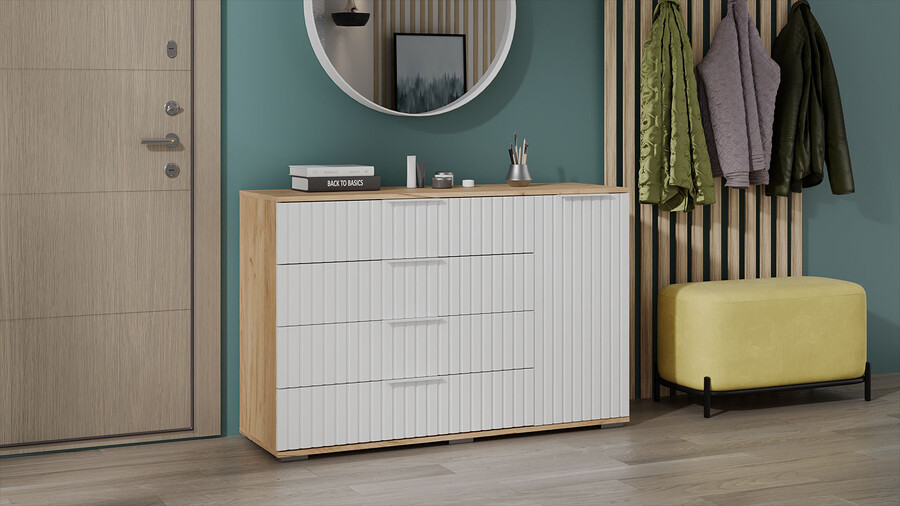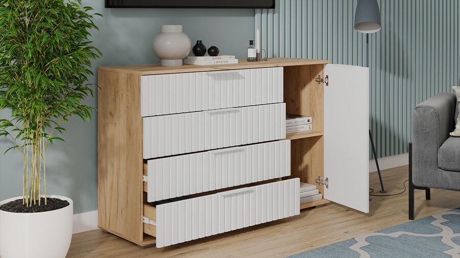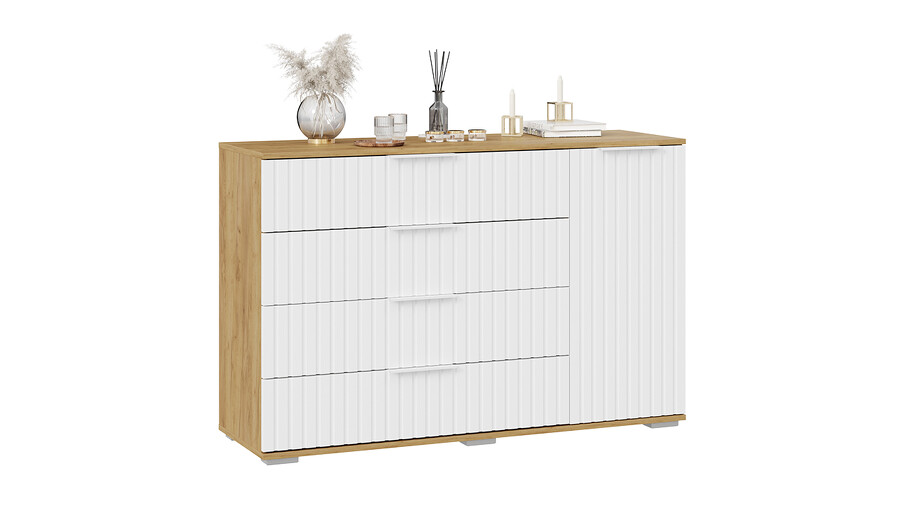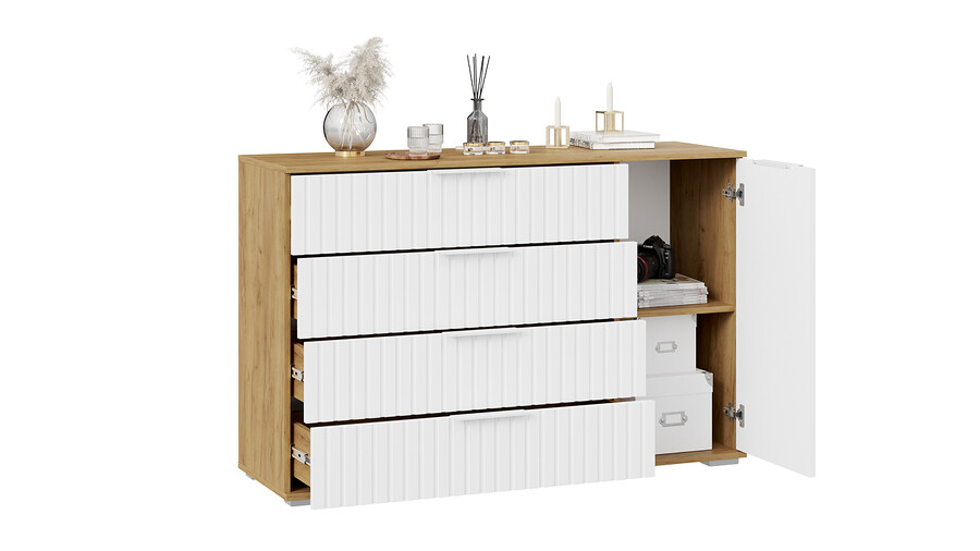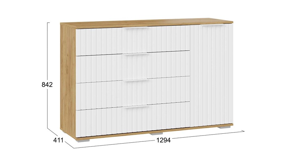 Комод комбинированный «Хилтон» - 402.012.000 Дуб Крафт золотой, Белый матовый