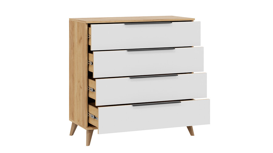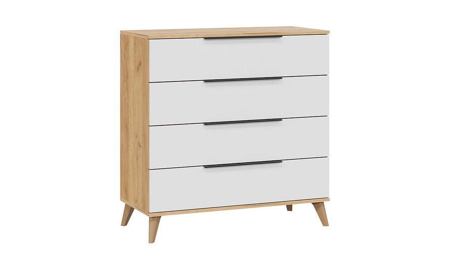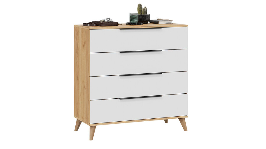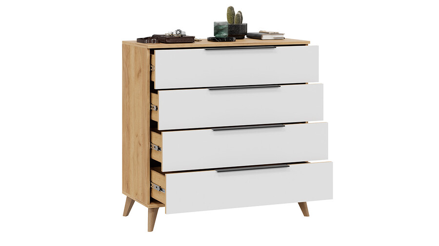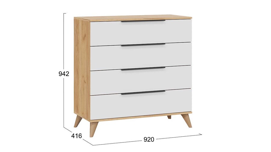 Комод «Джоли» с опорами Бук матовый, Дуб Крафт золотой, Белый матовый
