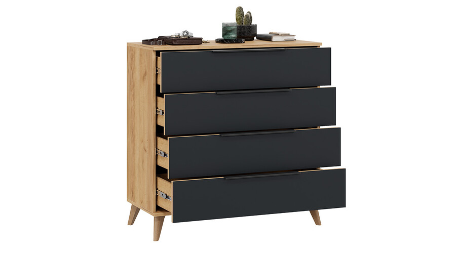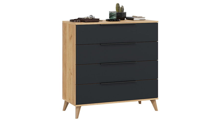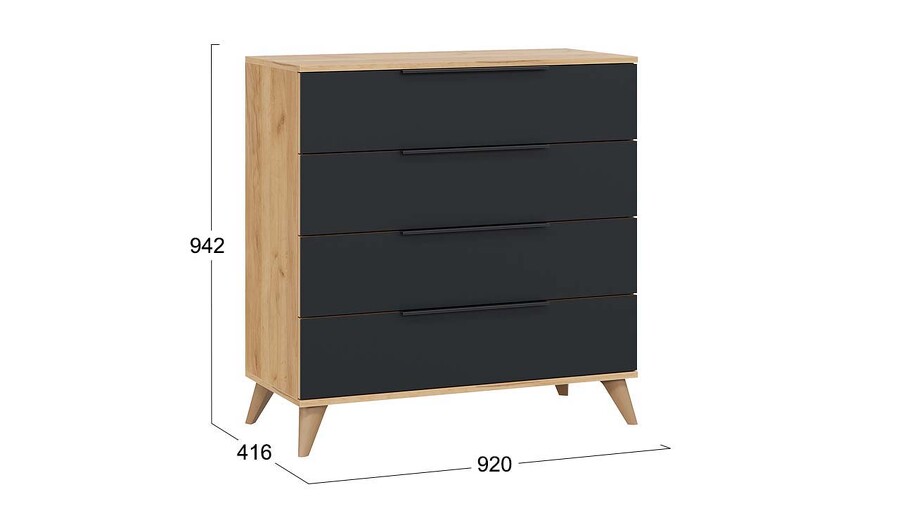 Комод «Джоли» с опорами Бук матовый, Дуб Крафт золотой, Графит матовый