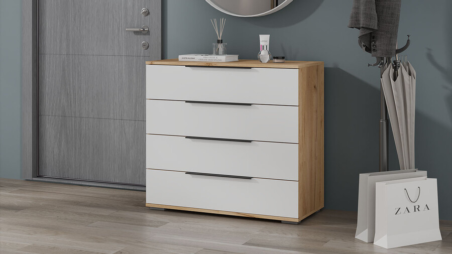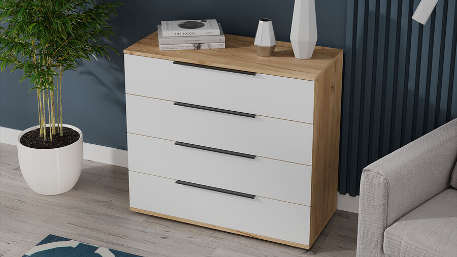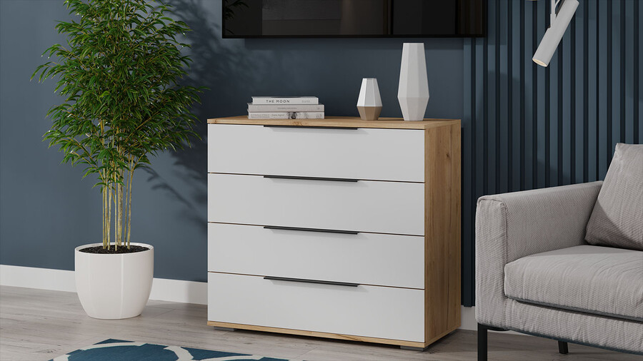 Комод «Джоли» - 405.003.000 Дуб Крафт золотой, Белый матовый