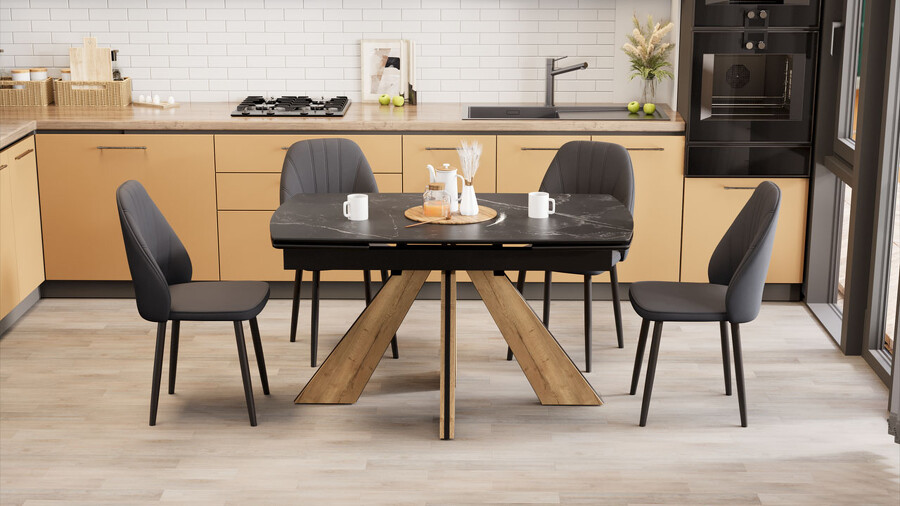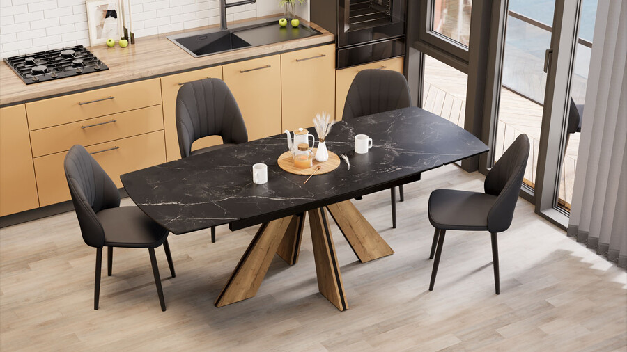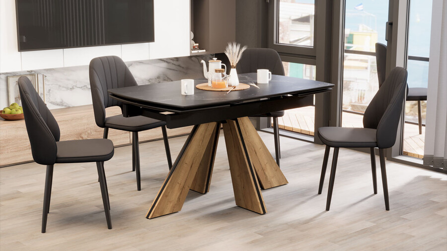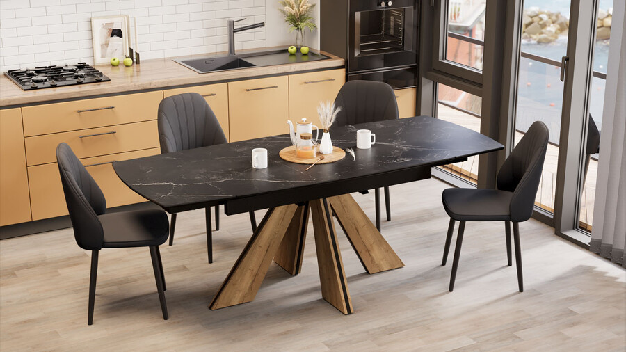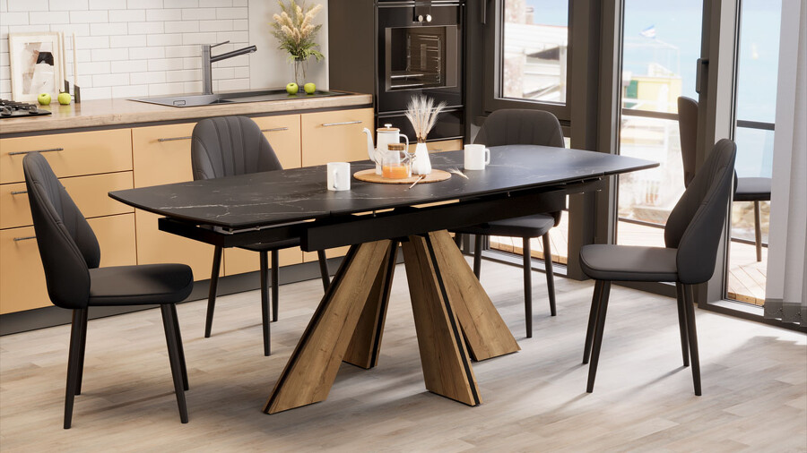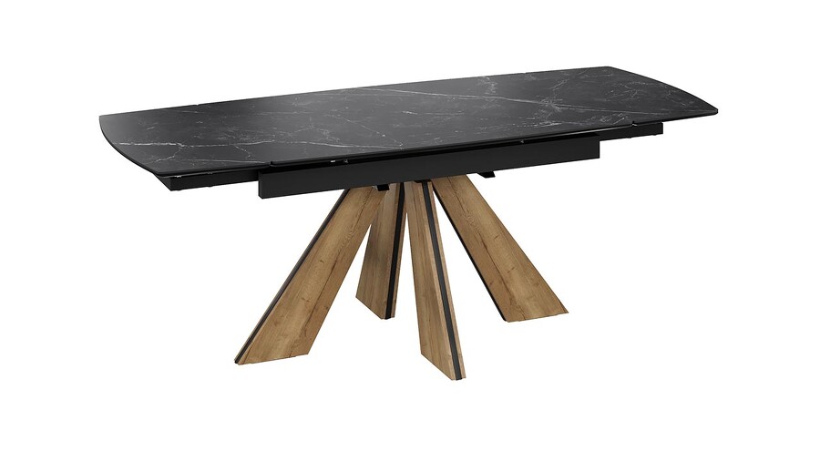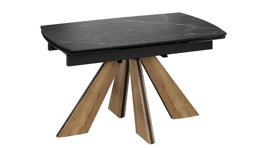 Стол обеденный "Палмер" Тип 1 Черный муар, Дуб галифакс нат, Керамика матовая черный мрамор