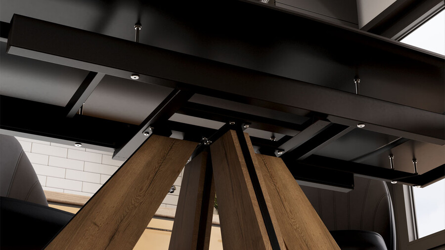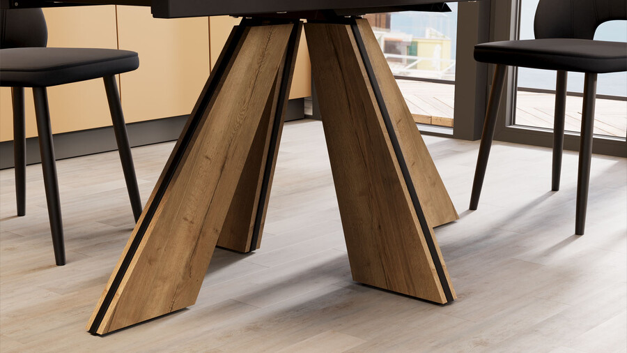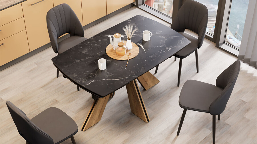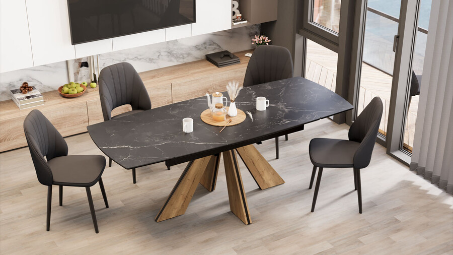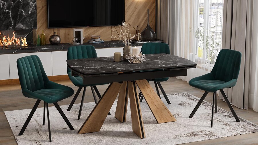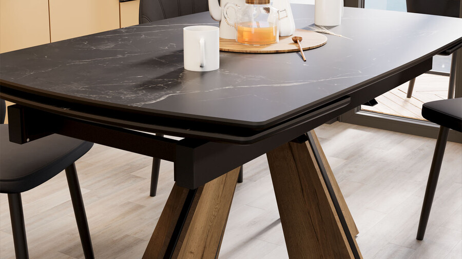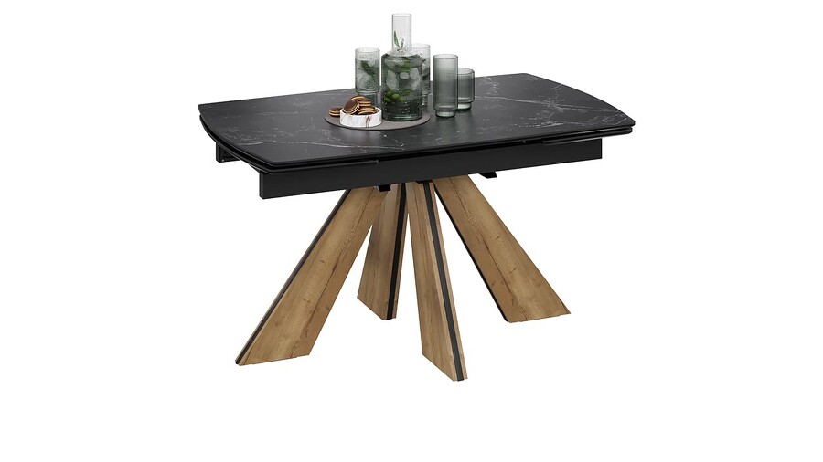 Стол обеденный "Палмер" Тип 1 Черный муар, Дуб галифакс нат, Керамика матовая черный мрамор