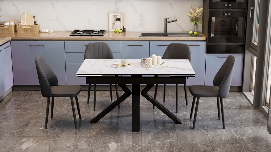 Стол обеденный "Дерби" Тип 1 Черный муар, Керамика матовая белый мрамор
