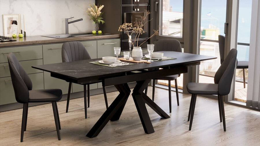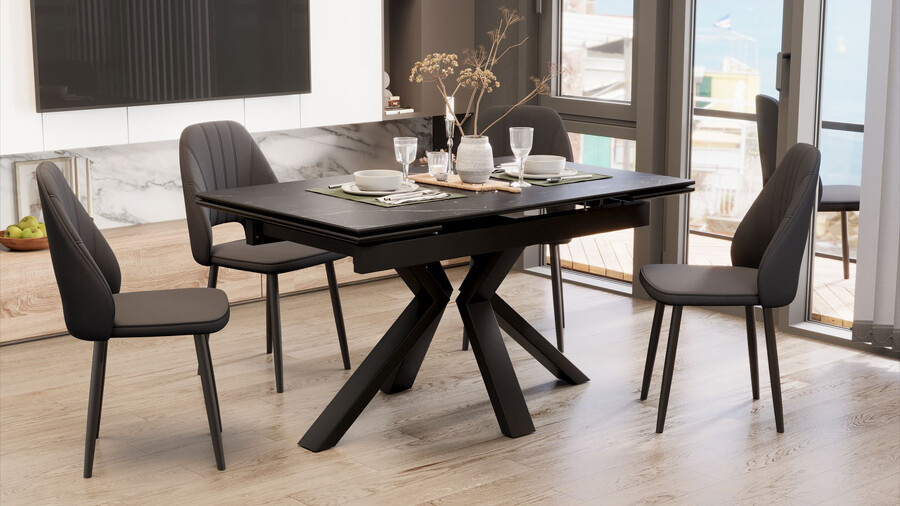 Стол обеденный "Дерби" Тип 1 Черный муар, Керамика матовая черный мрамор