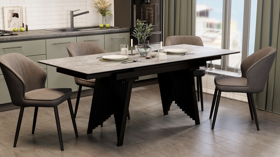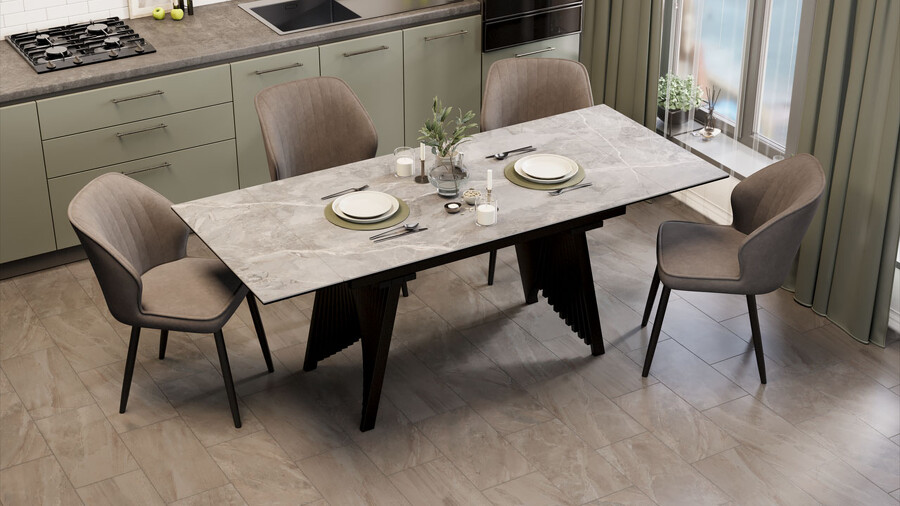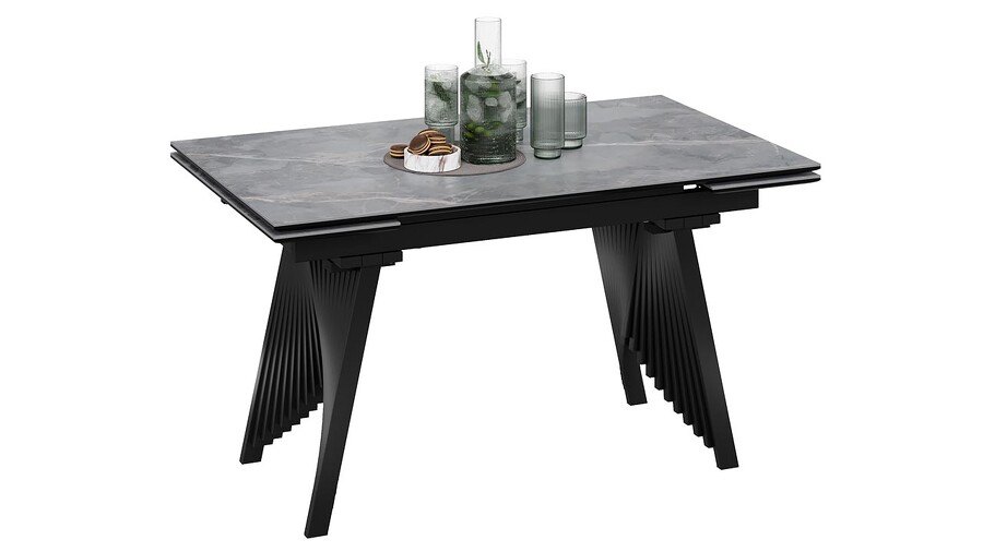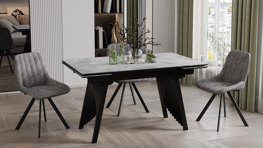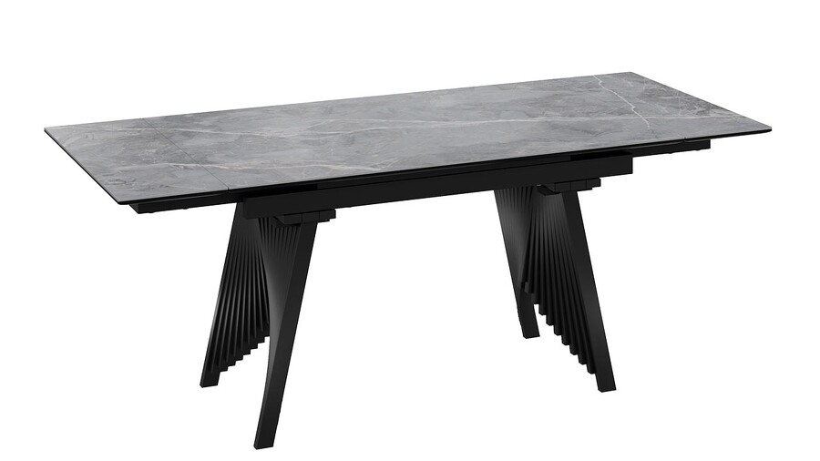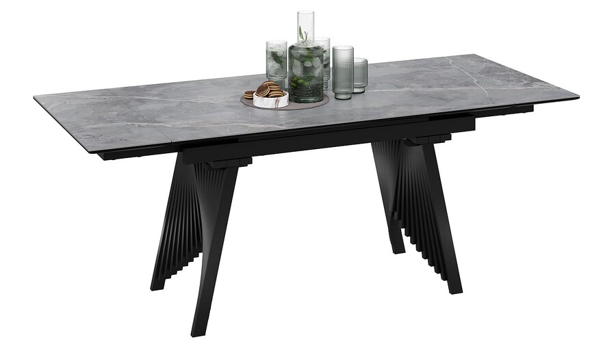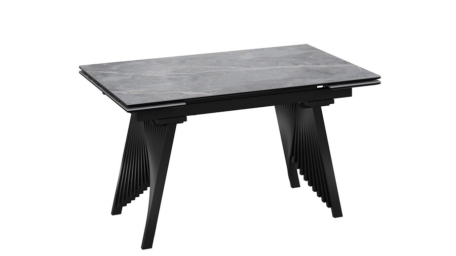 Стол обеденный "Шелдон" Тип 1 Черный муар, Керамика матовая серый мрамор