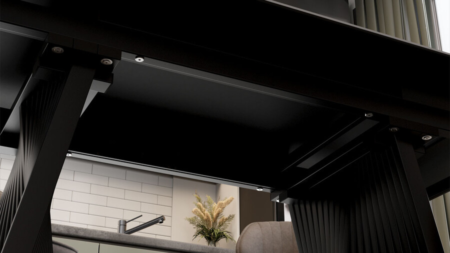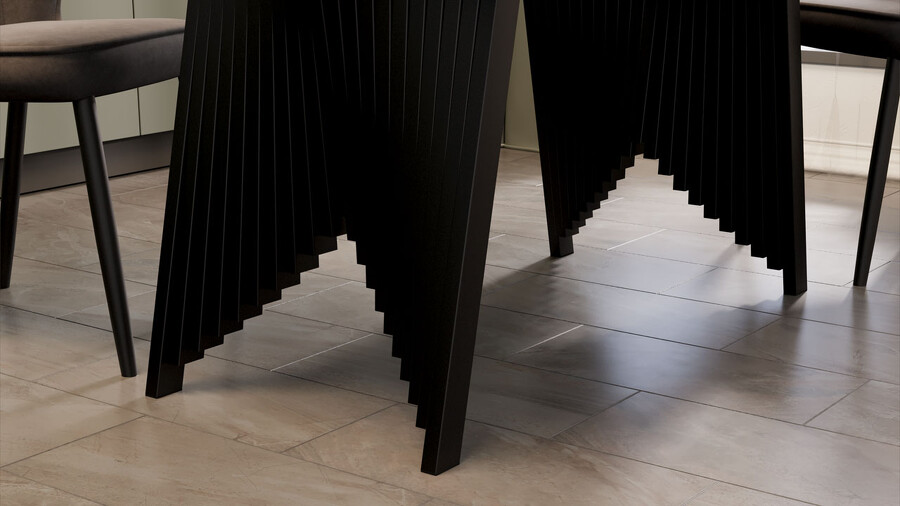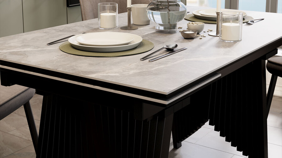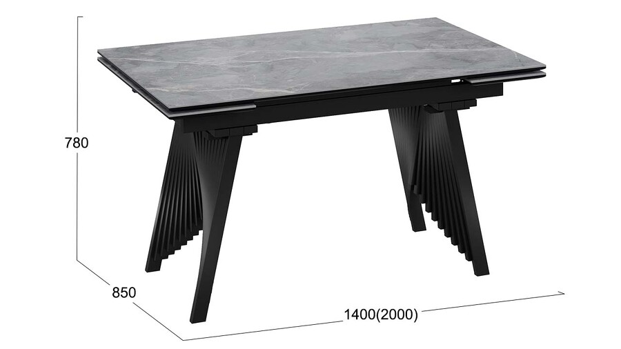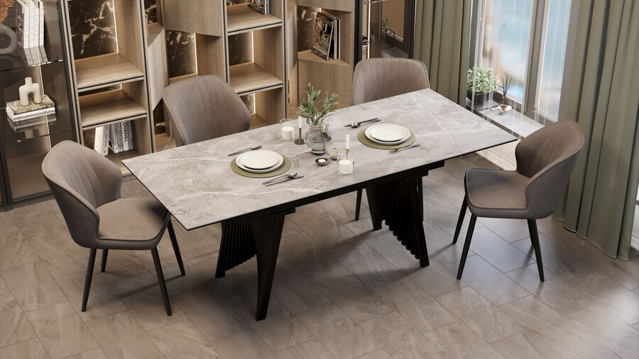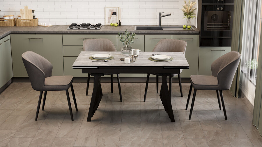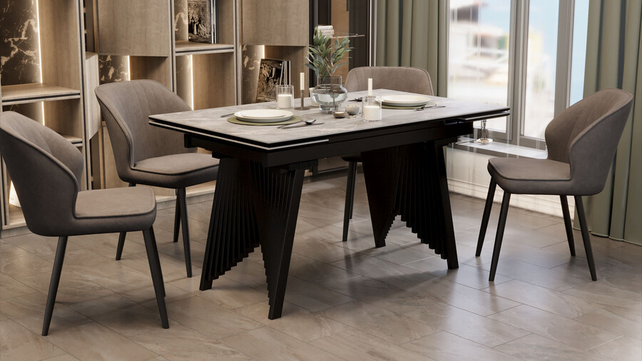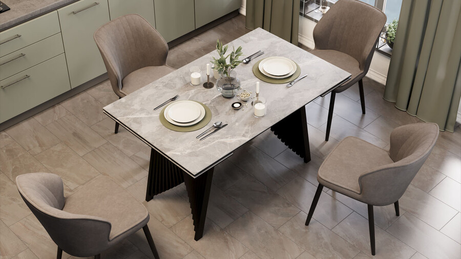 Стол обеденный "Шелдон" Тип 1 Черный муар, Керамика матовая серый мрамор