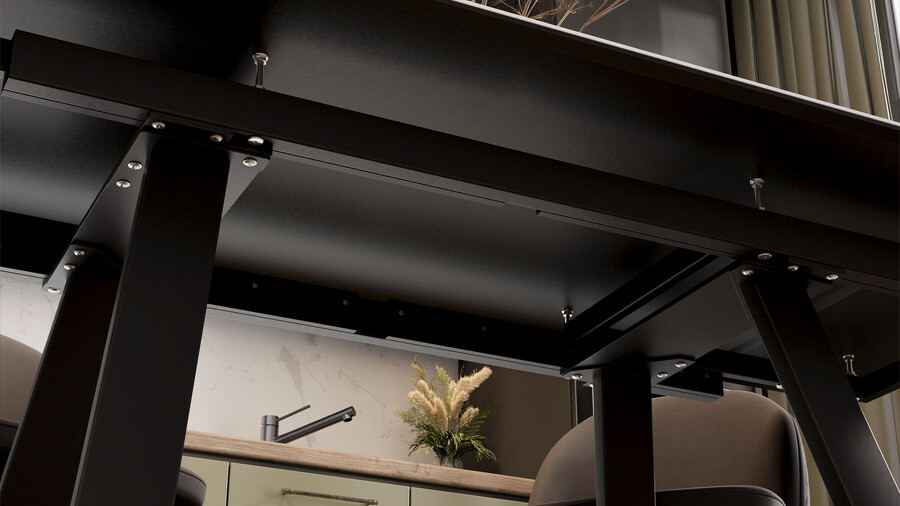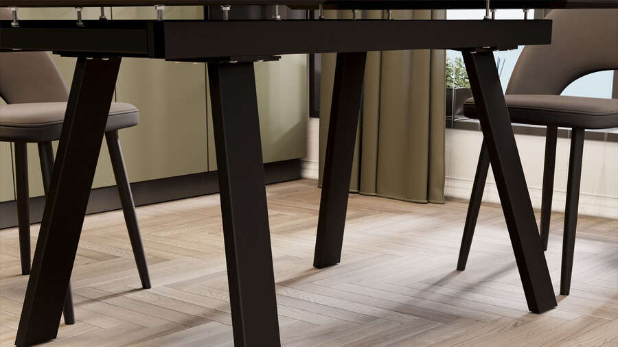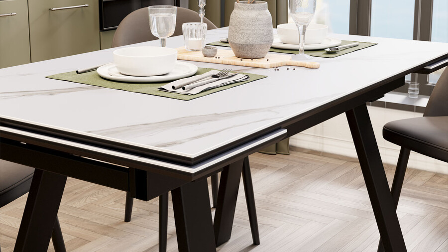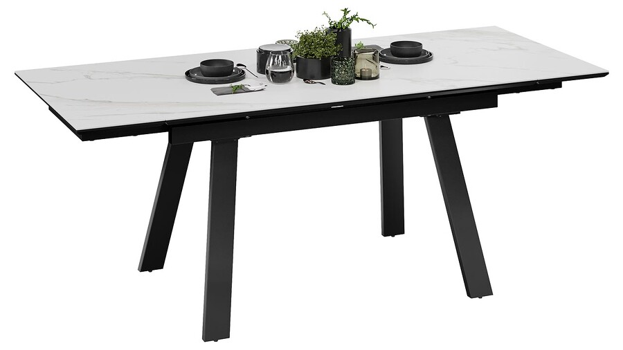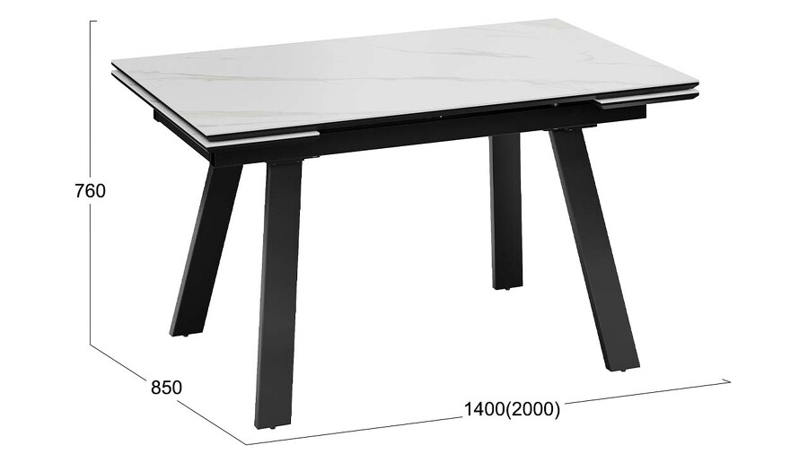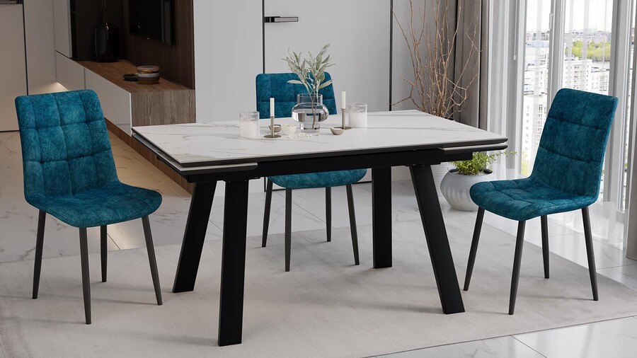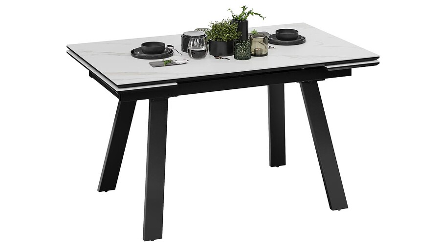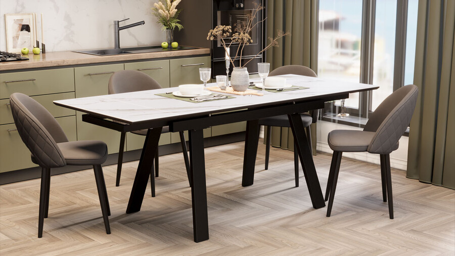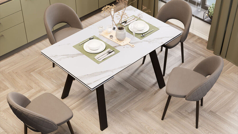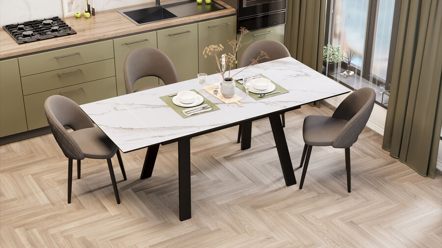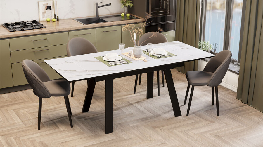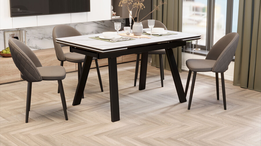 Стол обеденный «Дэкстон» тип 1 Черный муар, Керамика матовая белый мрамор