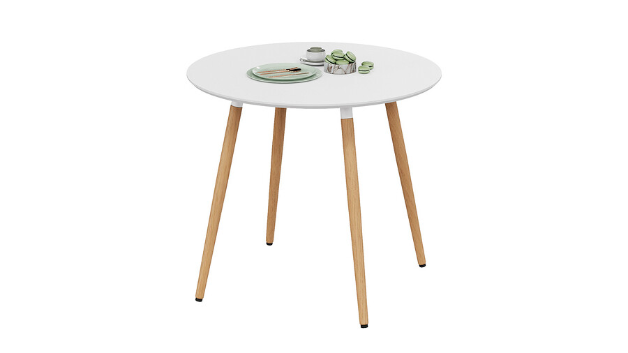 Стол обеденный «Оливия» Тип 1 - Б-370 Белый матовый, Металл белый, Натуральное дерево
