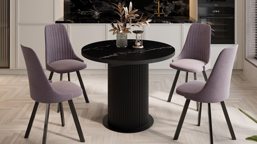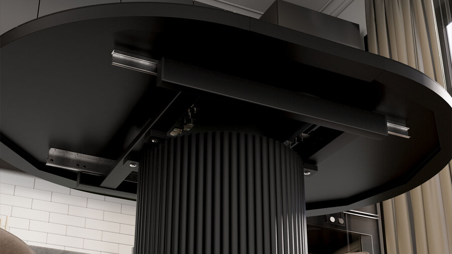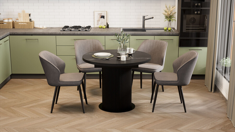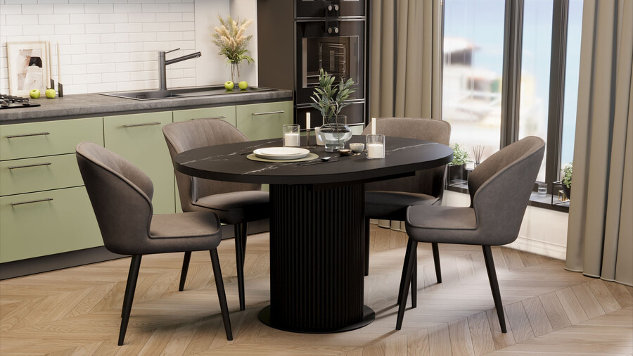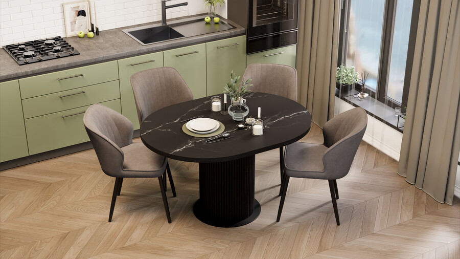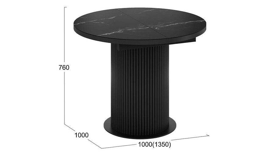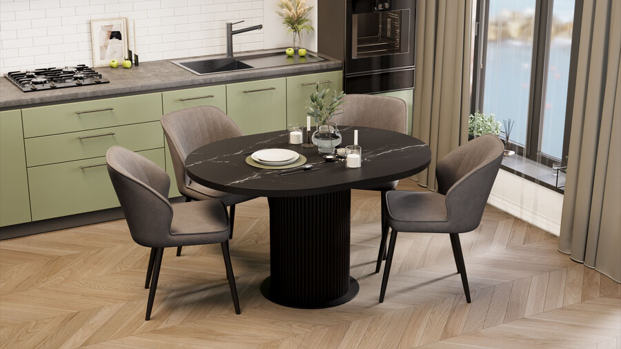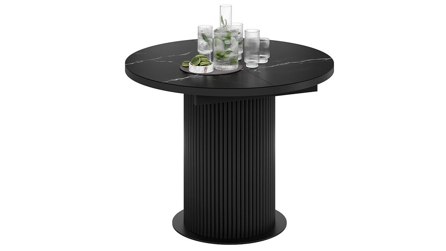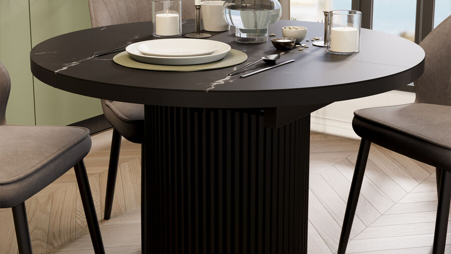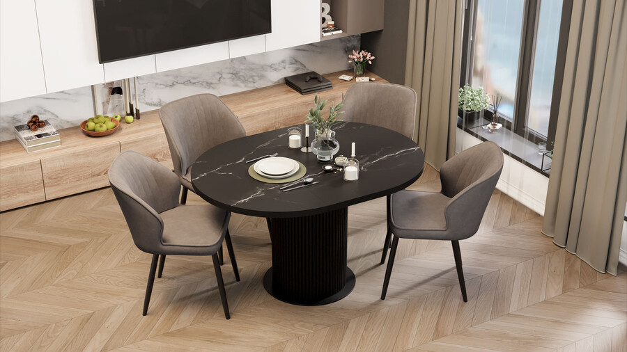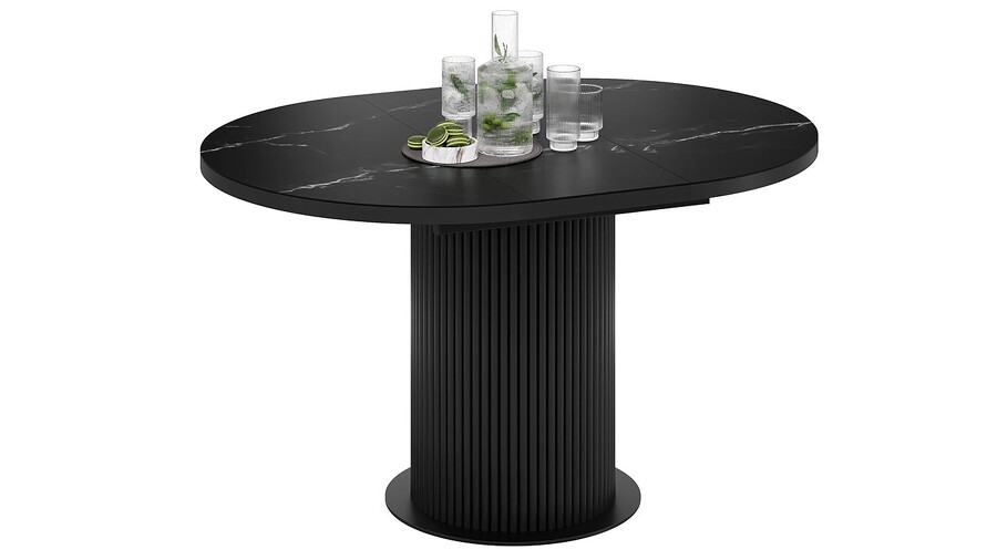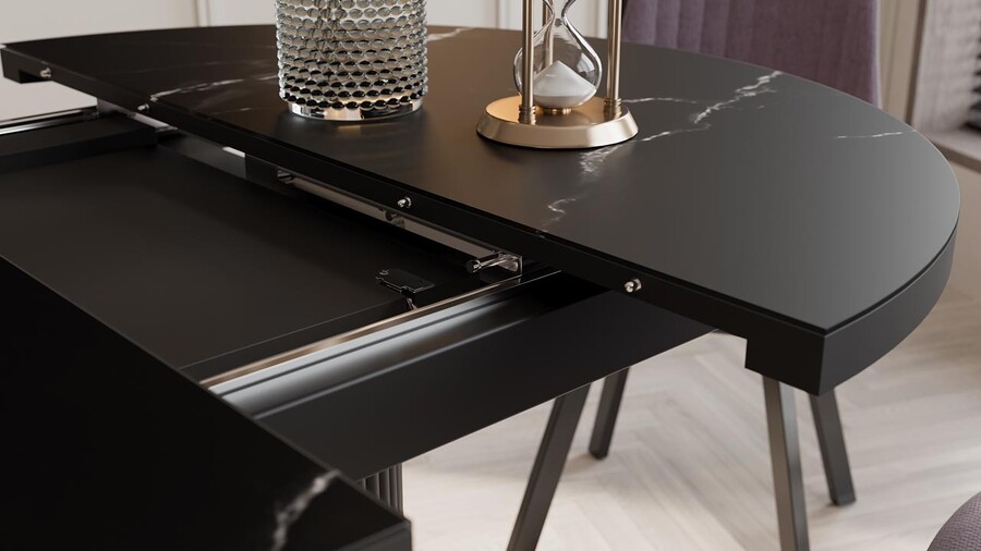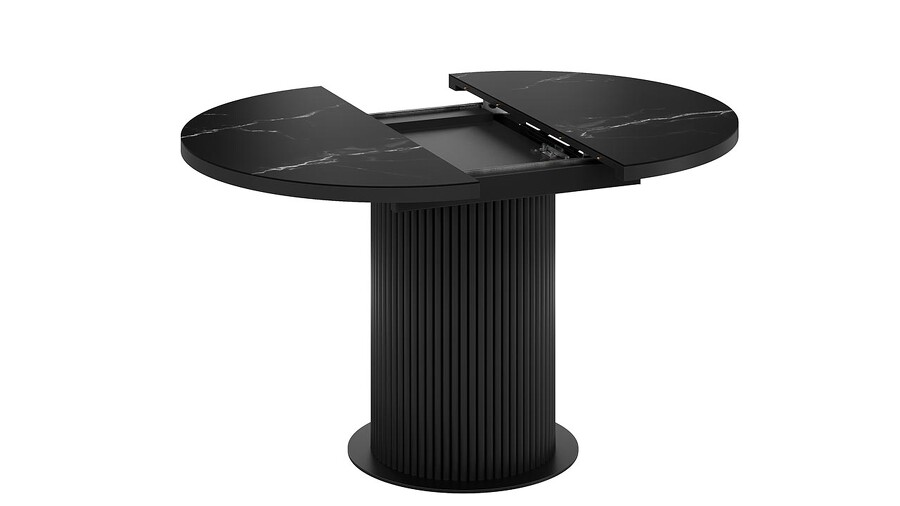 Стол обеденный раздвижной «Эридан» Тип 1 Черный муар, Стекло матовое черный мрамор
