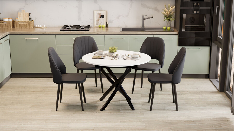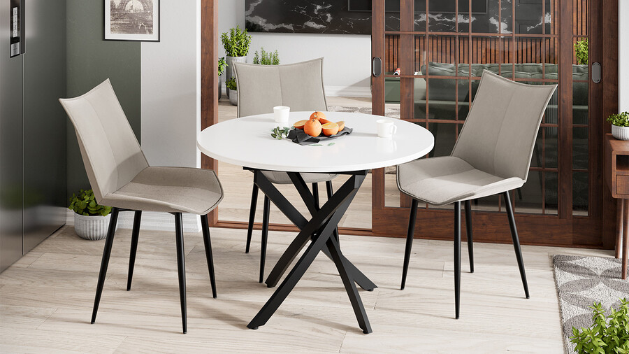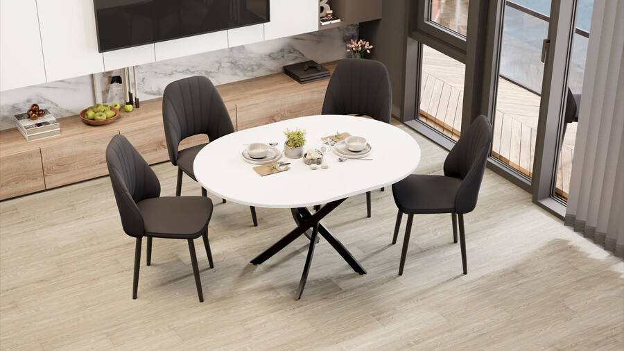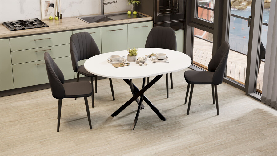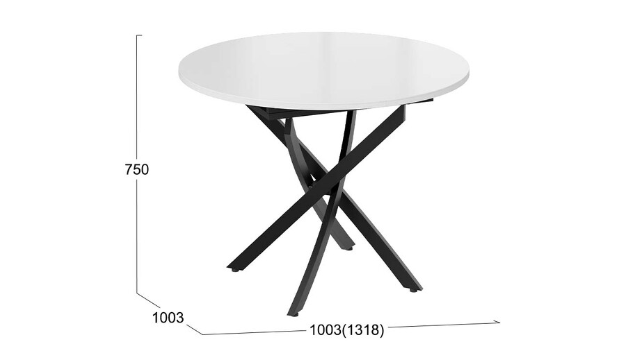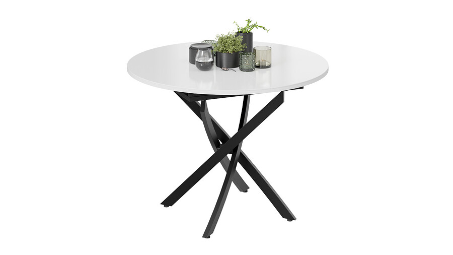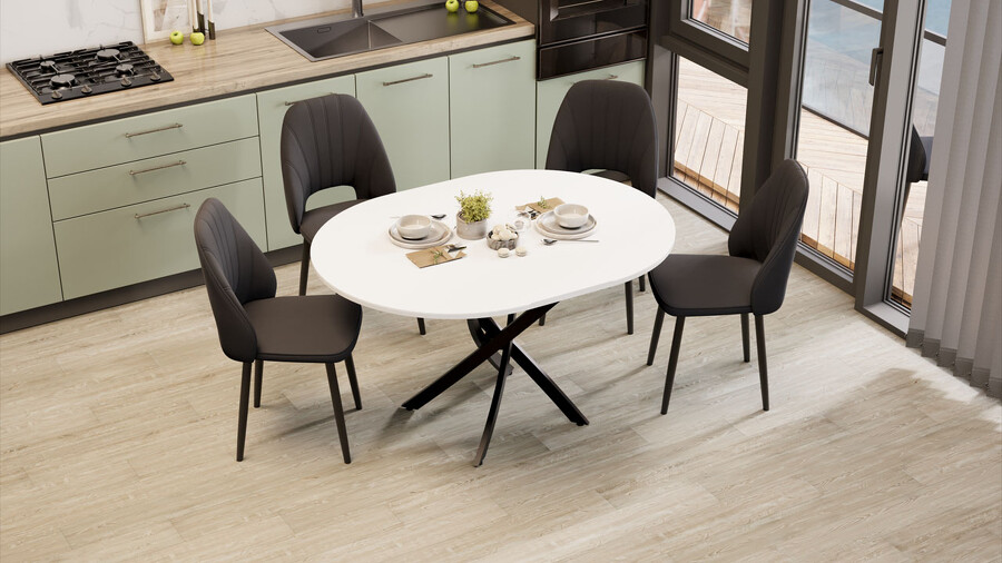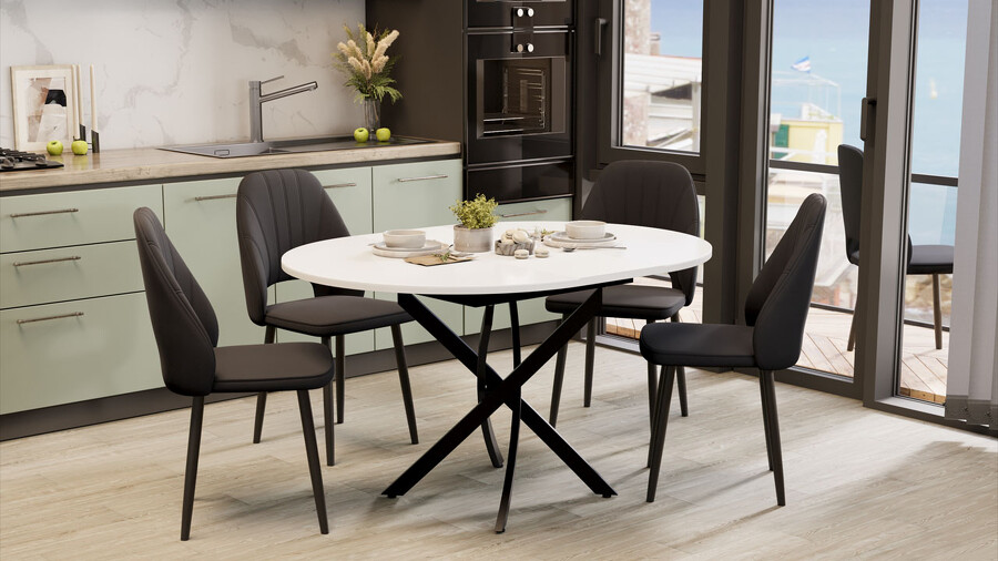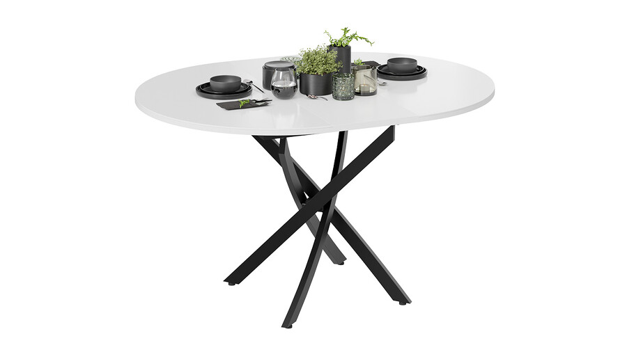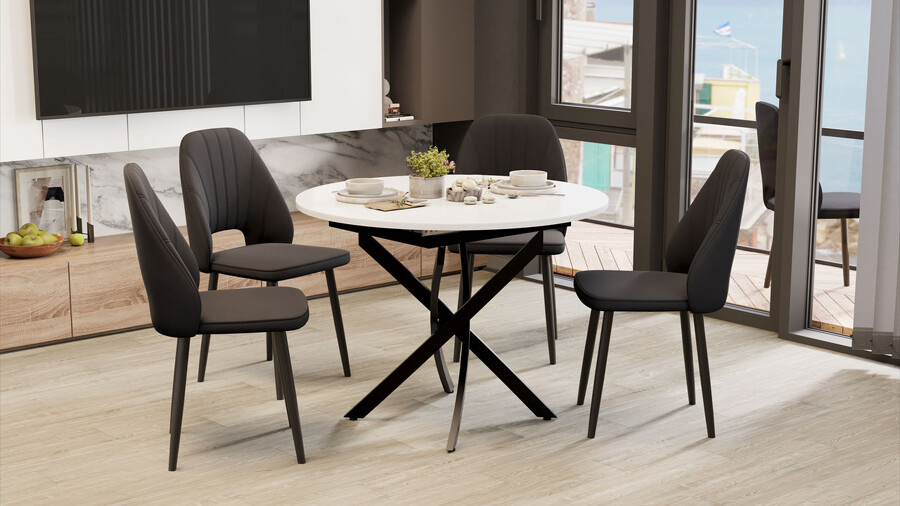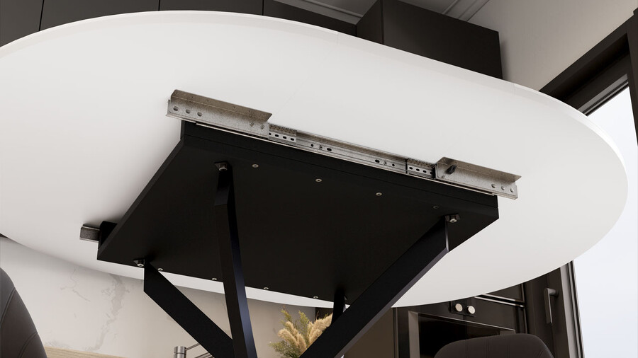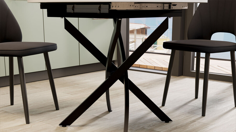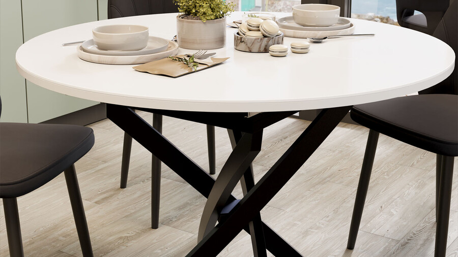 Стол обеденный раздвижной «Дуглас» Тип 1 Черный муар, Стекло глянцевое белое