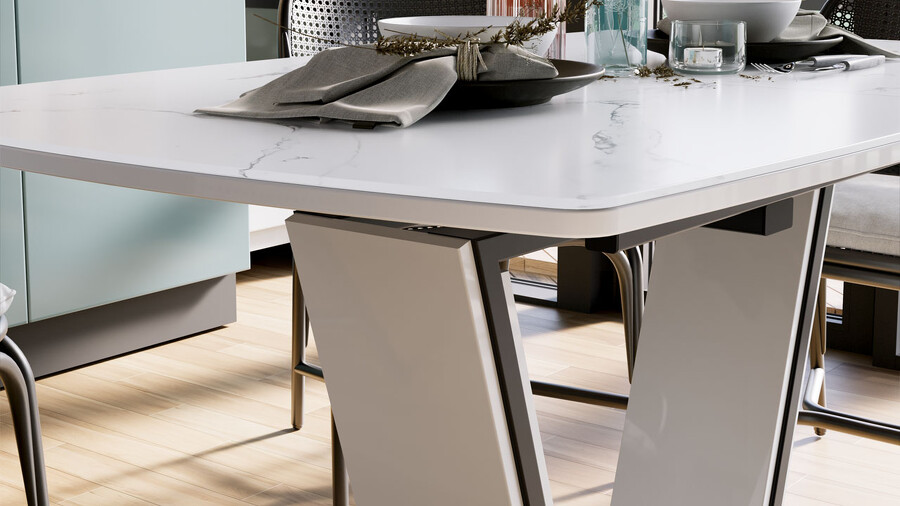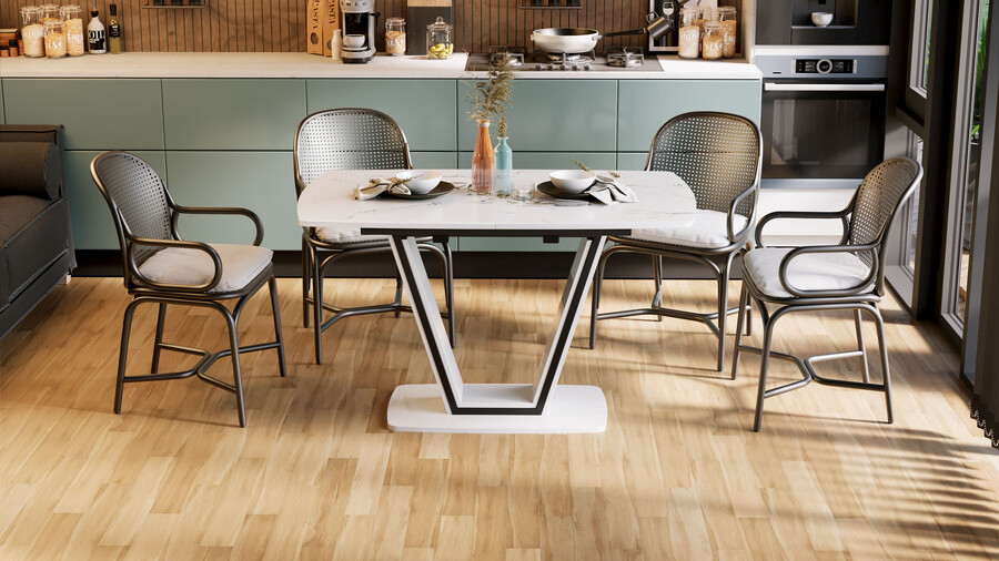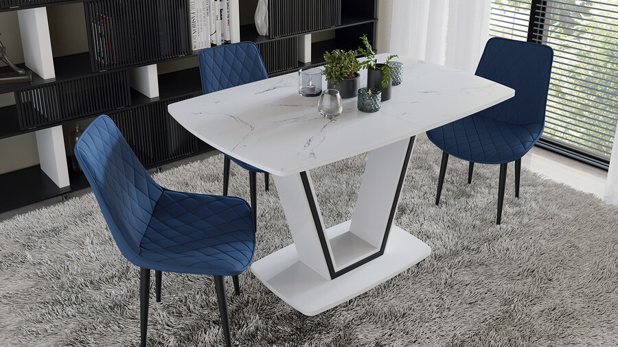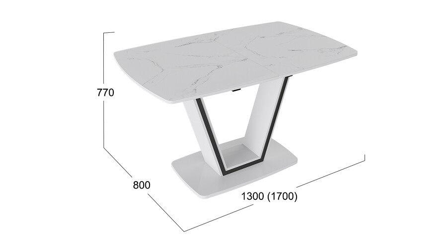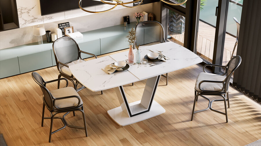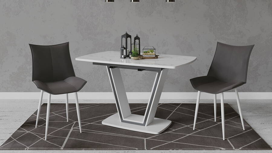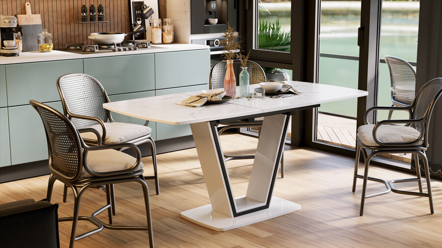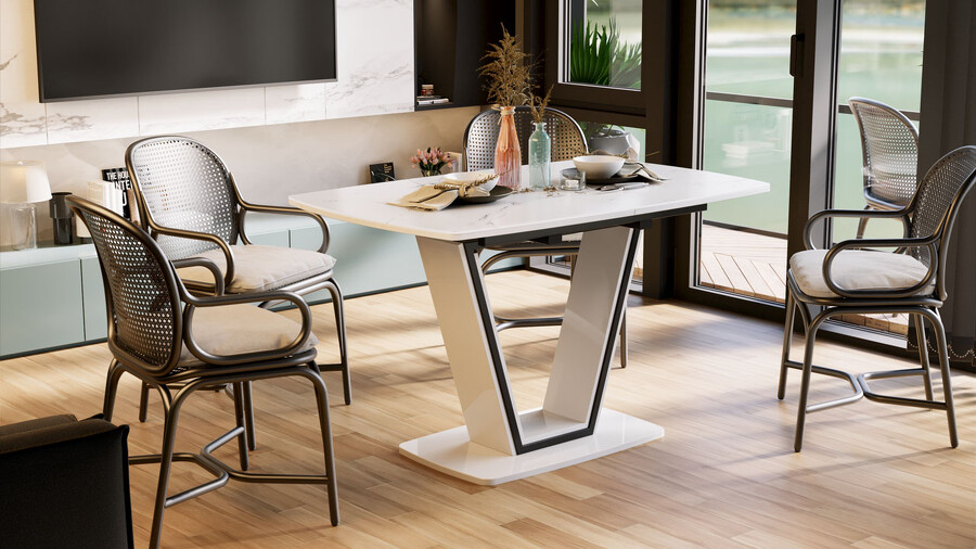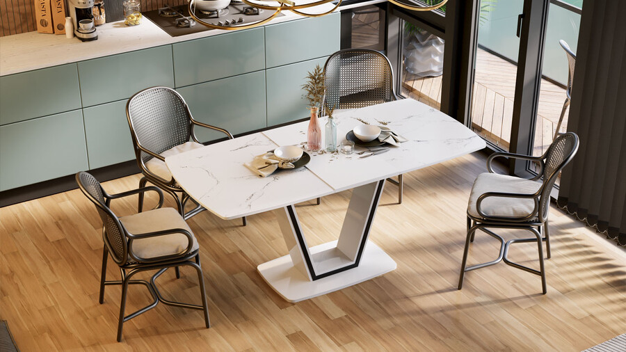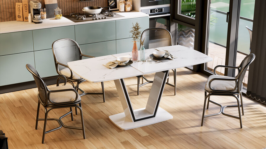 Стол обеденный «Дели» Тип 1 Белый глянец, Стекло матовое белый мрамор