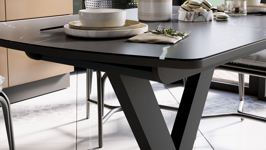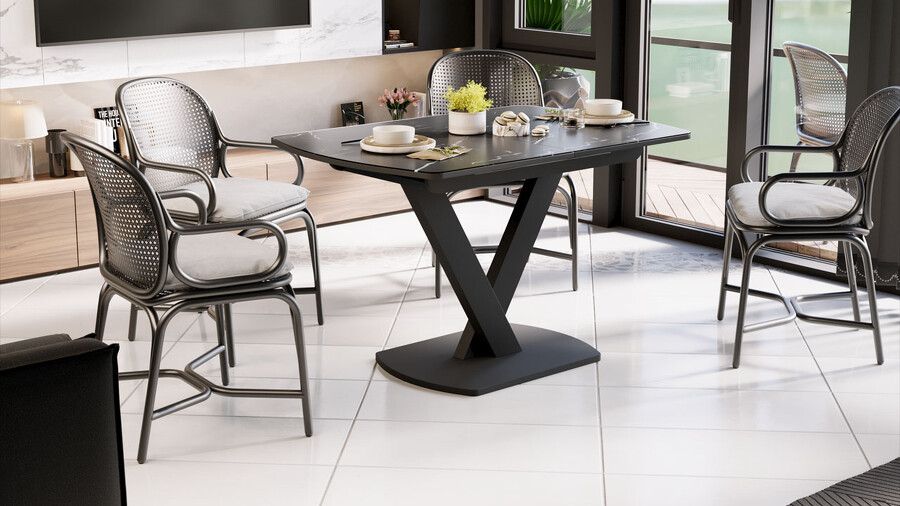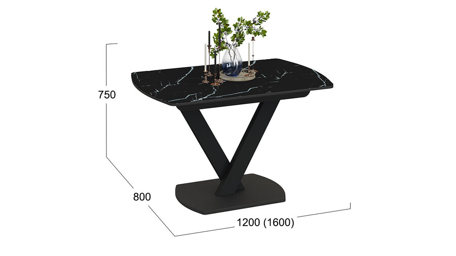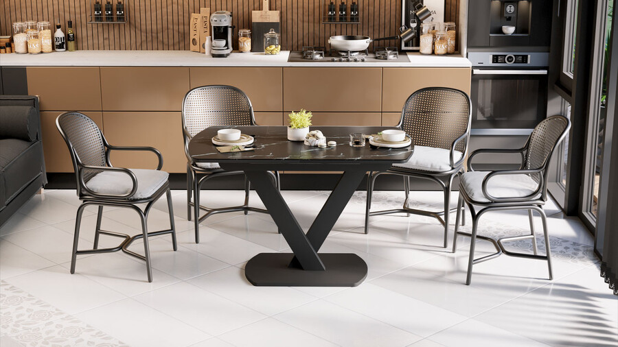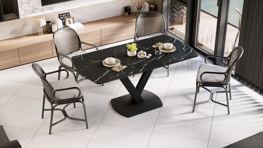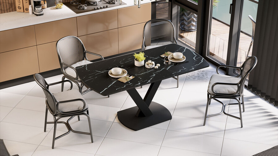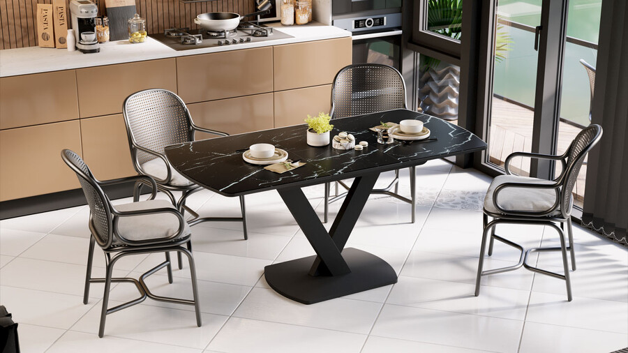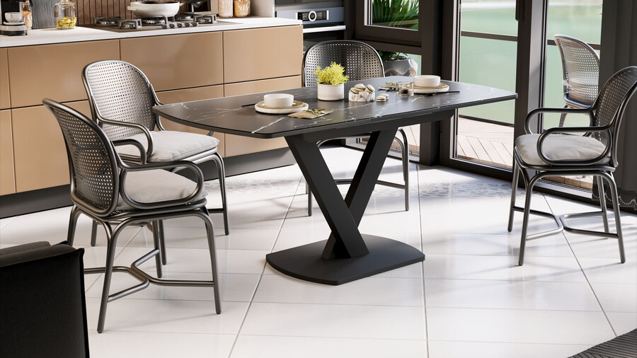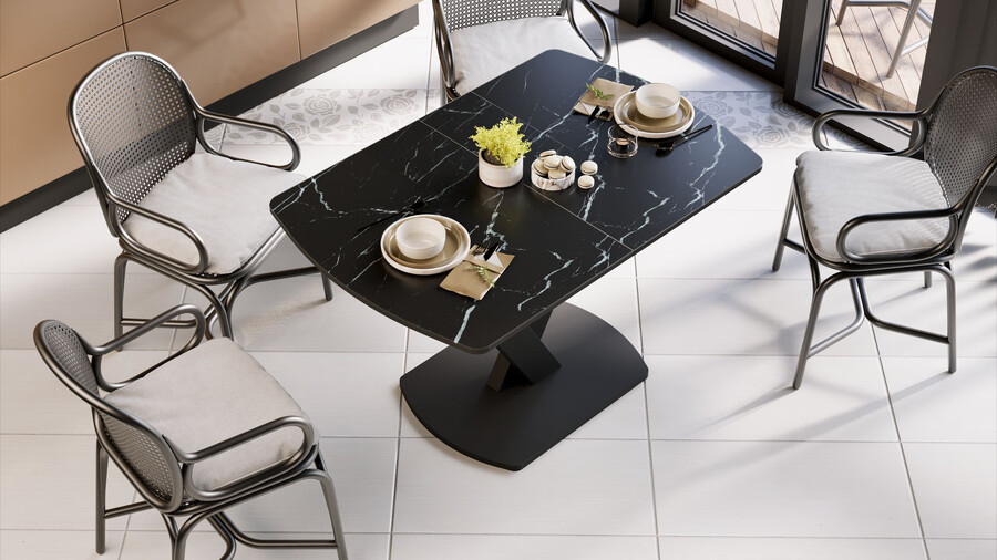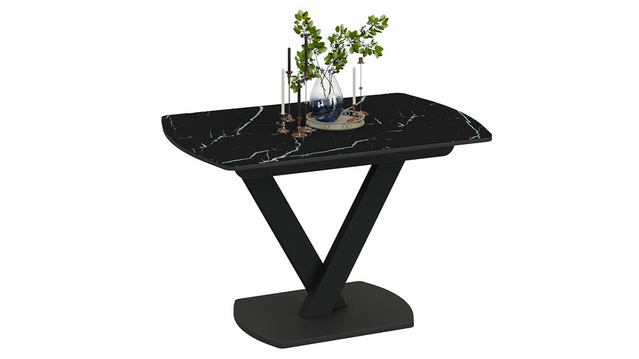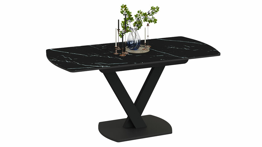Стол обеденный «Салерно» Тип 1 Черный муар, Стекло черный мрамор